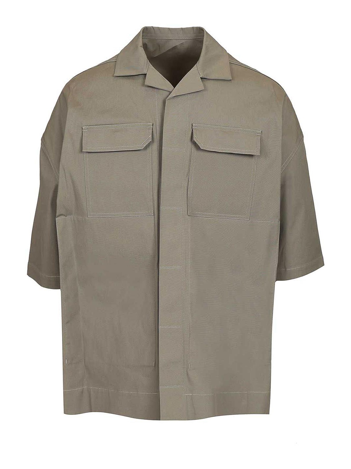 Kurzes Stretchhemd mit aufgesetzten Taschen und verdeckter Knopfleiste