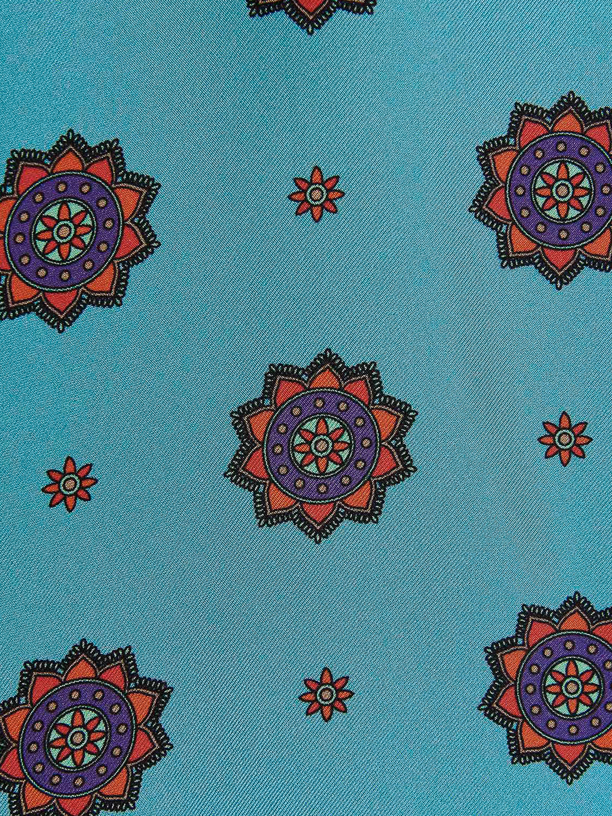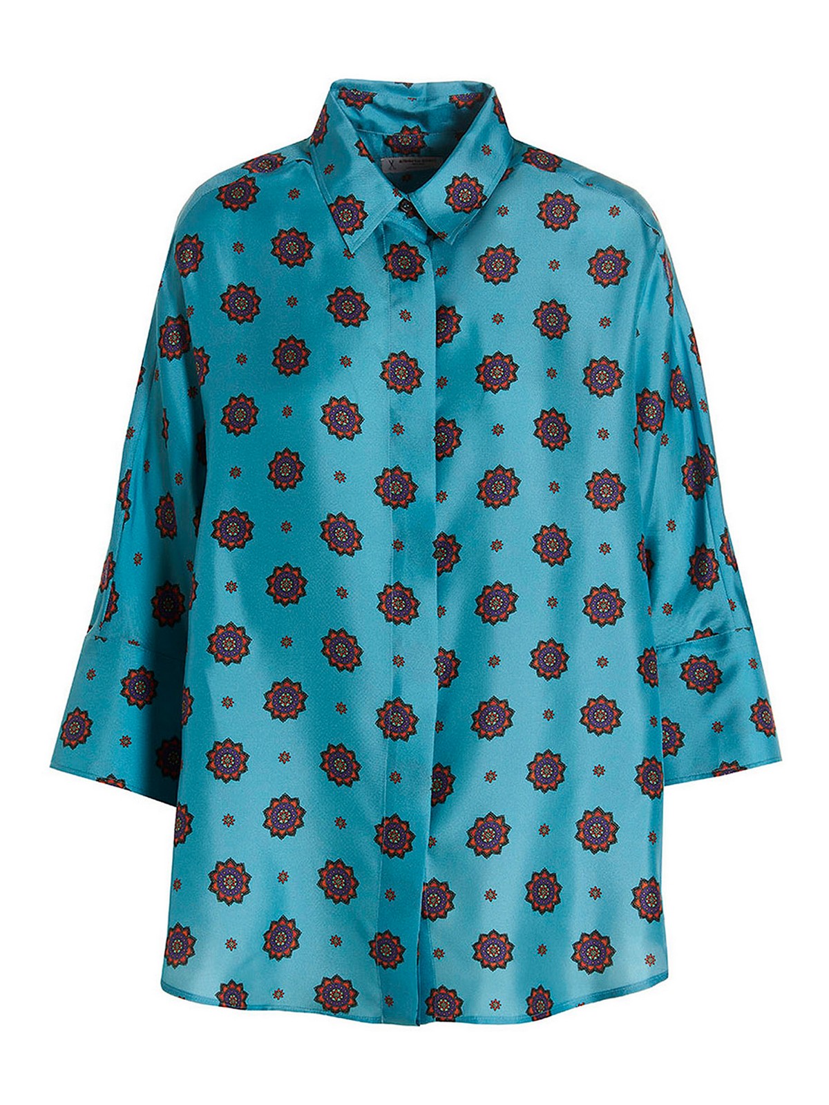 Seidenhemd mit Allover-Print, Knopfverschluss, 3/4-Ärmeln, breiten Manschetten.