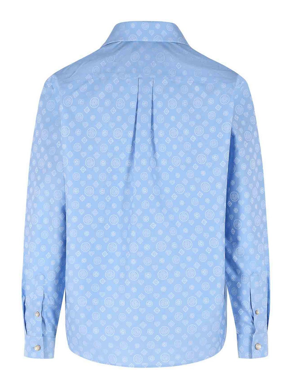 Spitzkragen, leicht kontrastierendes monogrammiertes Muster, verdeckter Knopfverschluss auf der Vorderseite, aufgesetzte Brusttasche, Knopfmanschetten, abgerundeter Saum