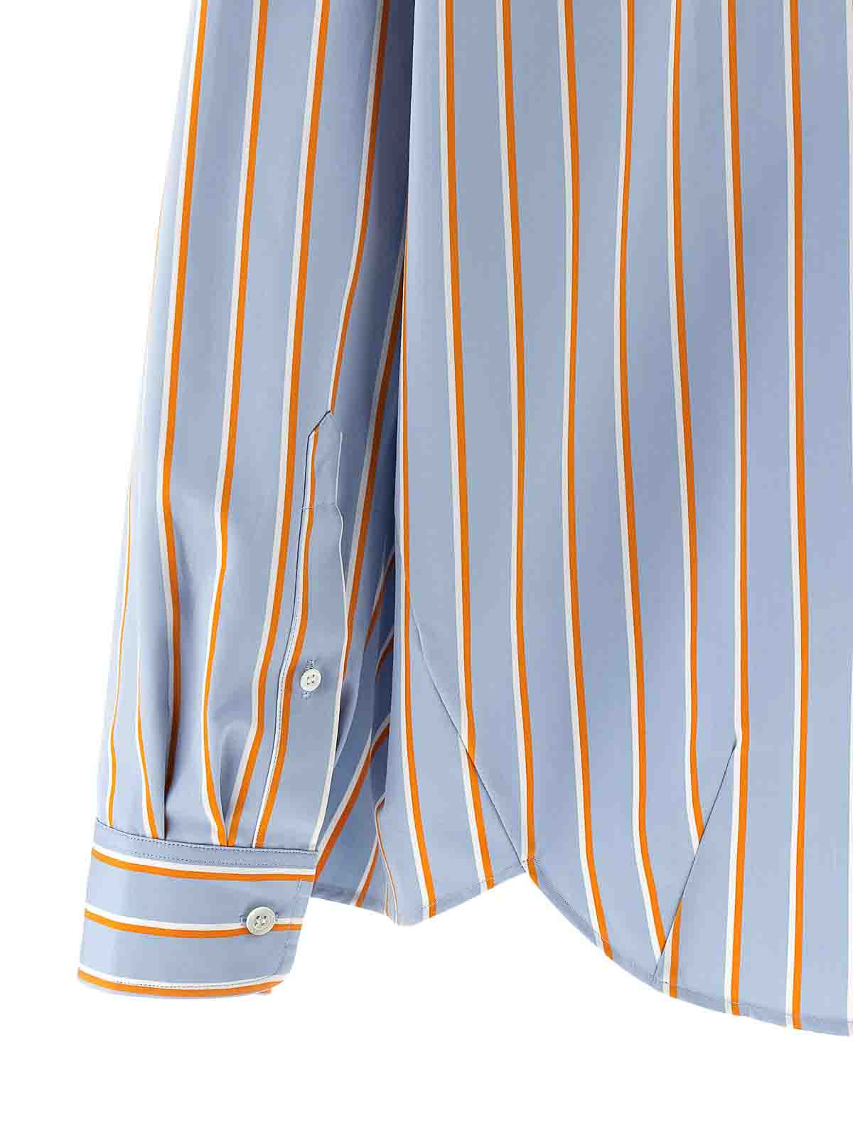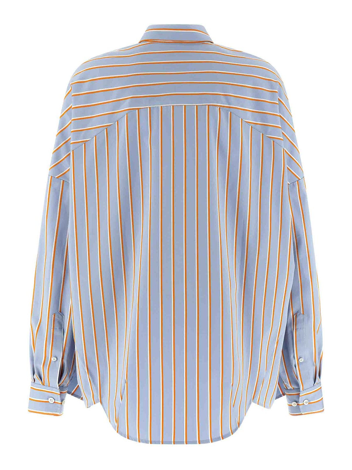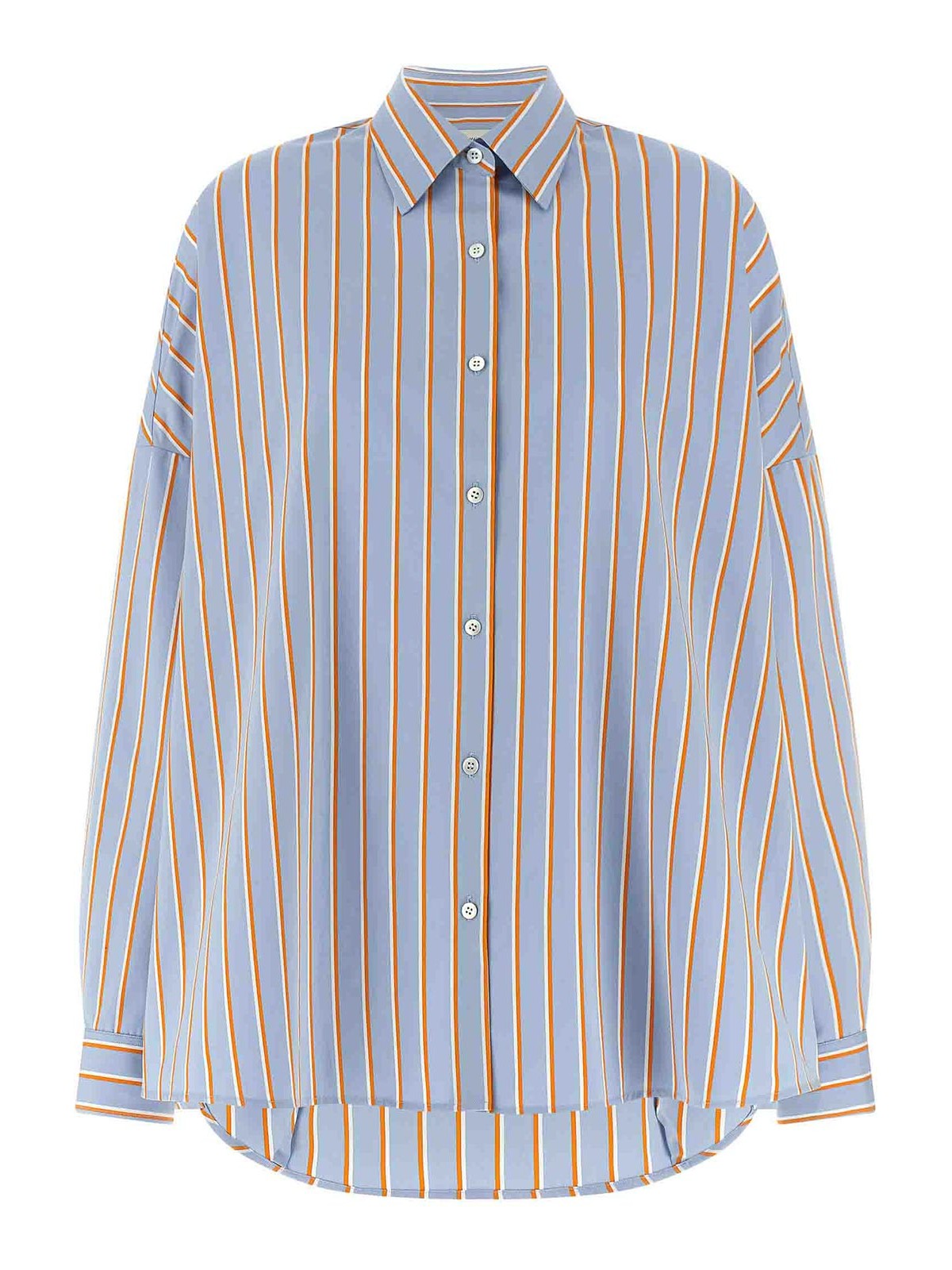 Gestreiftes Baumwollhemd von Casia mit Knopfverschluss auf der Vorderseite, langen Ärmeln mit Manschetten und abgesenkten Schultern, asymmetrischem Saum.
