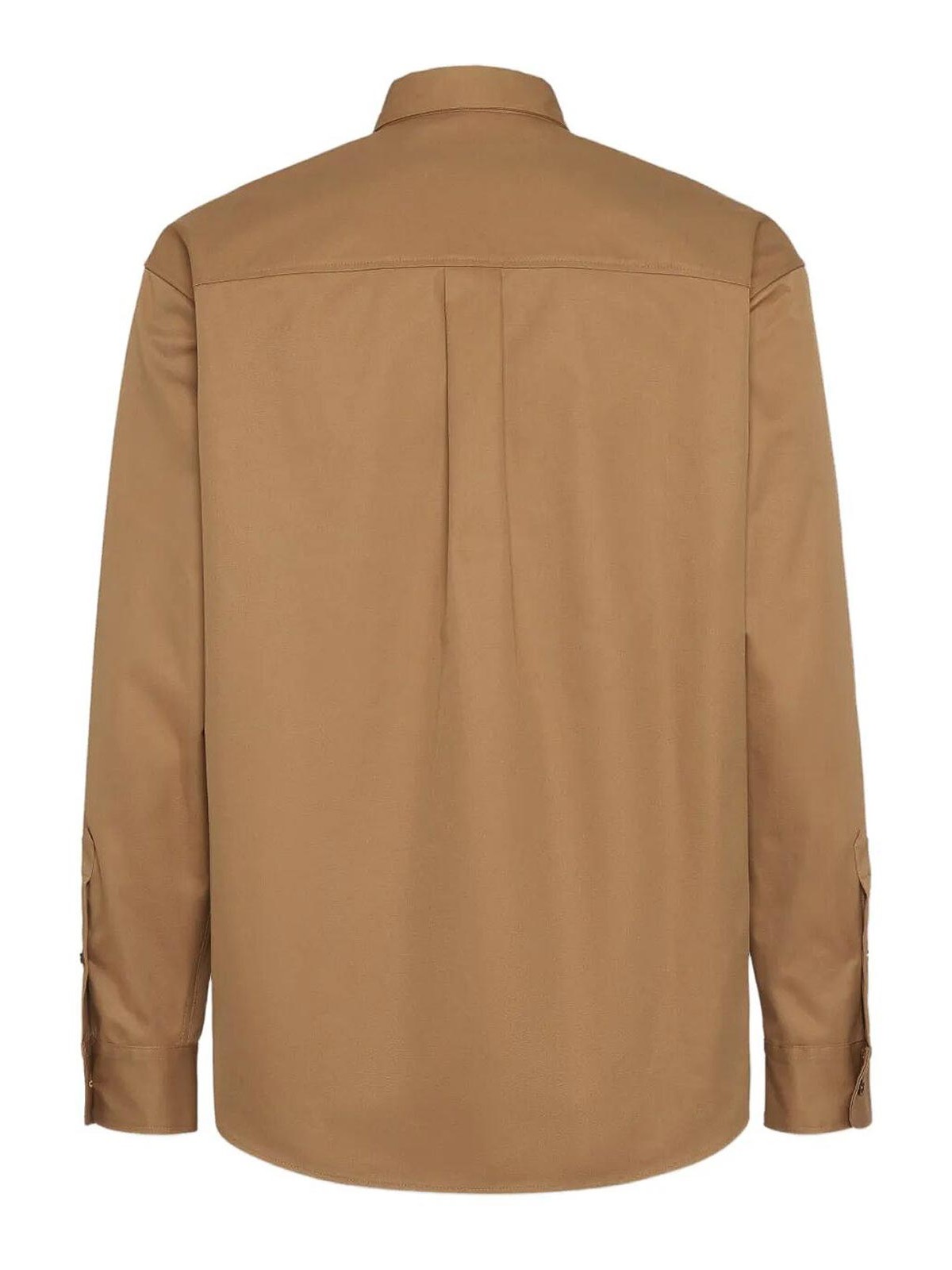 Brauner Knopfverschluss, zwei Brusttaschen, Faltendetail auf der Rückseite, verstellbare Manschetten mit Knöpfen