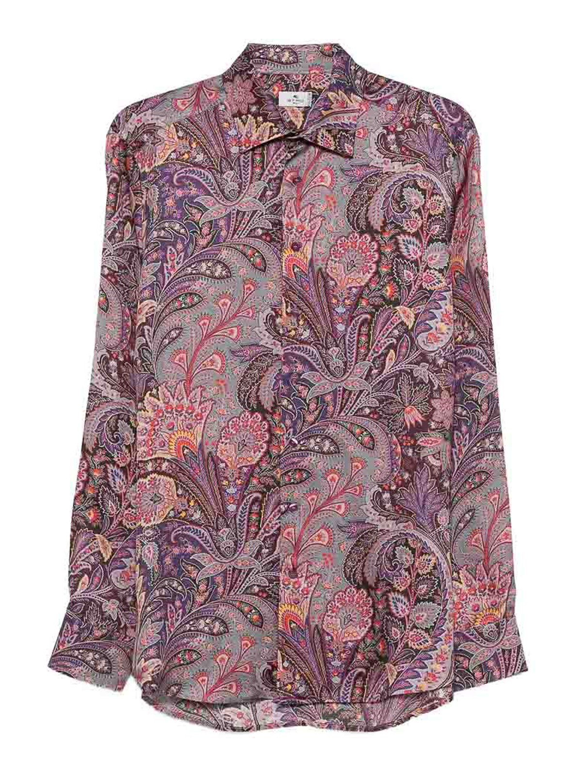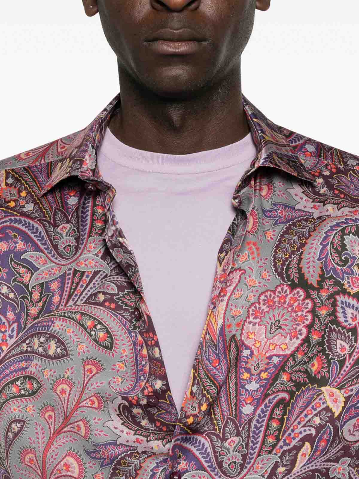 Lila/mehrfarbiger Paisley-Print, Knopfverschluss, lange Ärmel, geknöpfte Manschetten, klassischer Kragen