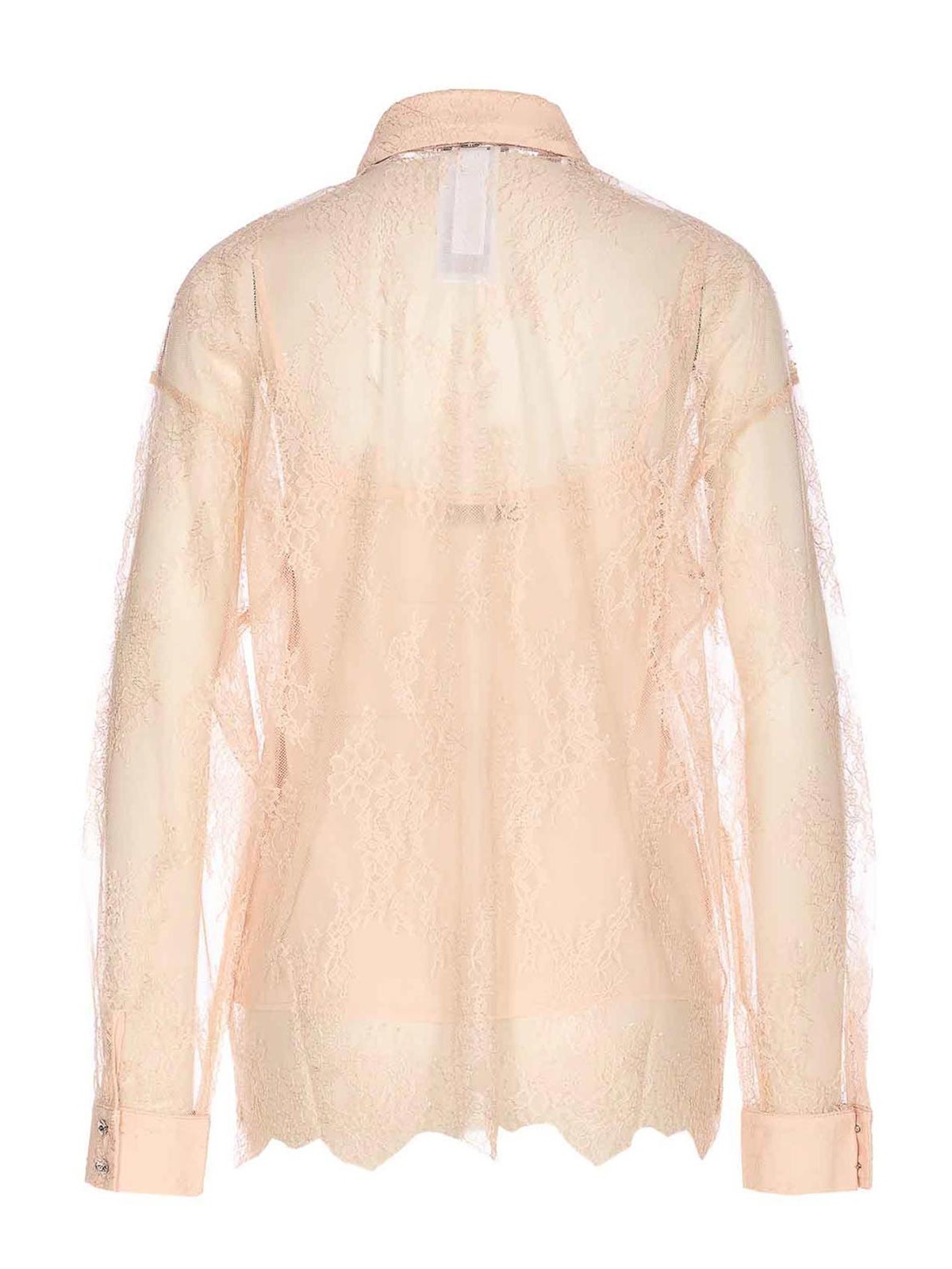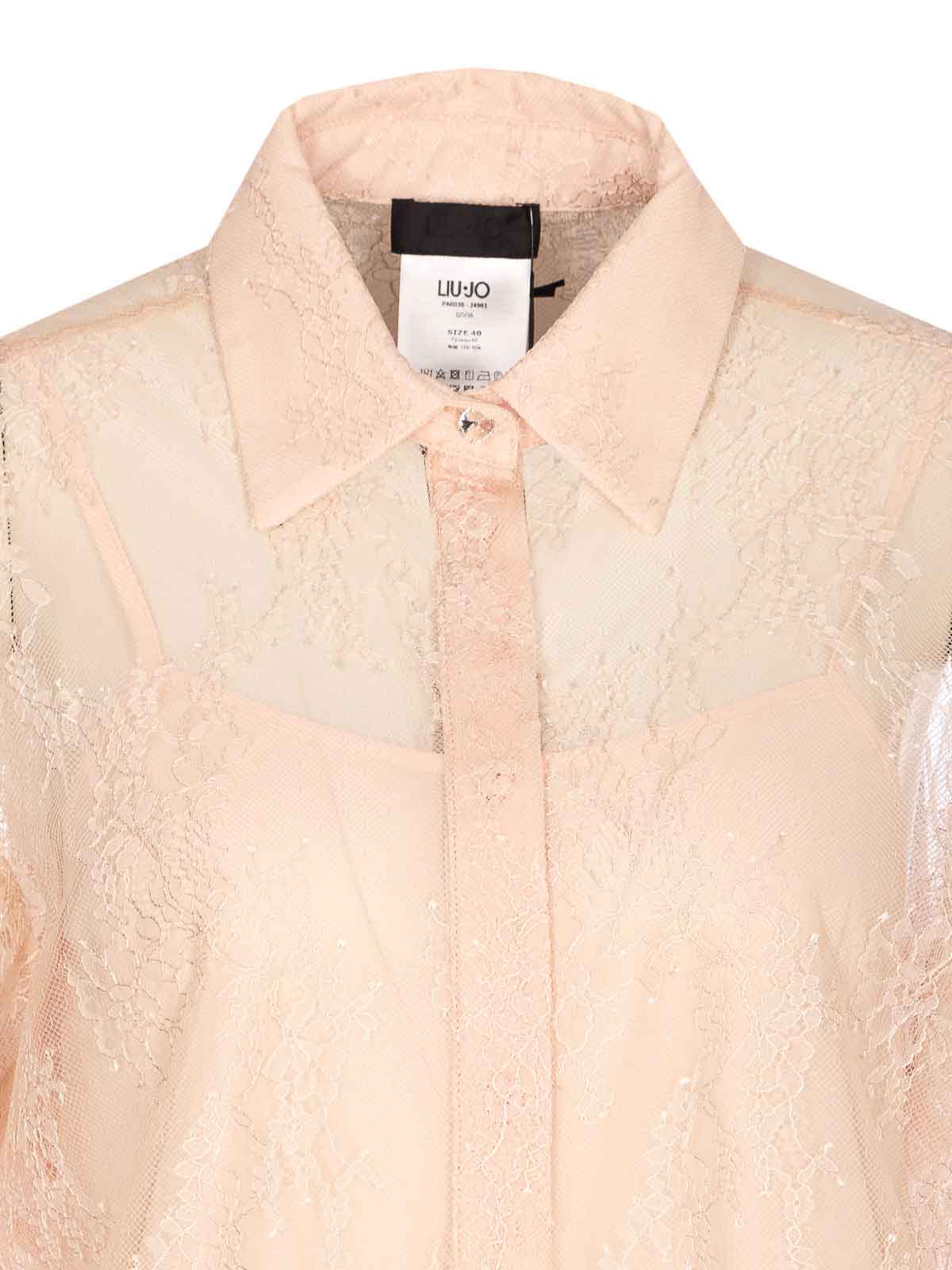 Liu Jo rosafarbenes Spitzenhemd, Unterrock, Knopfverschluss, normaler Kragen, lange Ärmel