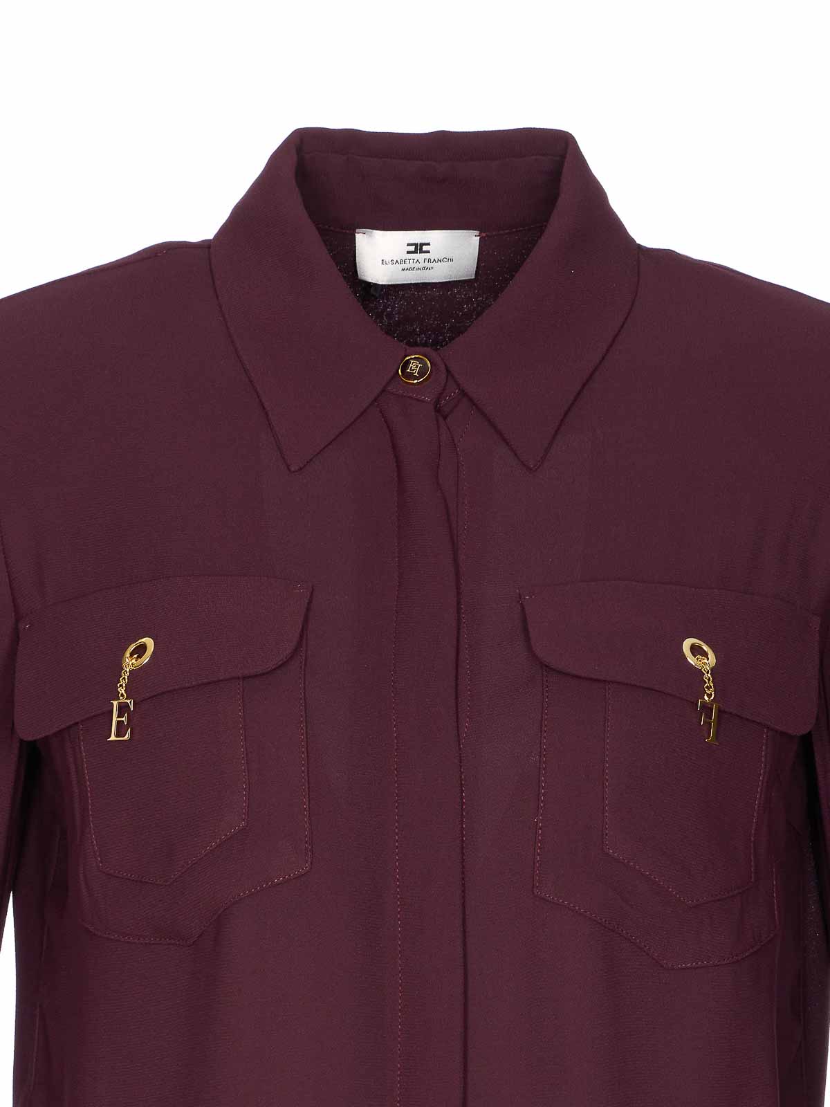 Elisabetta Franchi Bordeauxfarbenes Hemd mit Knöpfen an der Vorderseite, Manschetten, Fronttaschen mit Logo, regulärer Kragen, Designer-Farbbezeichnung: Rot