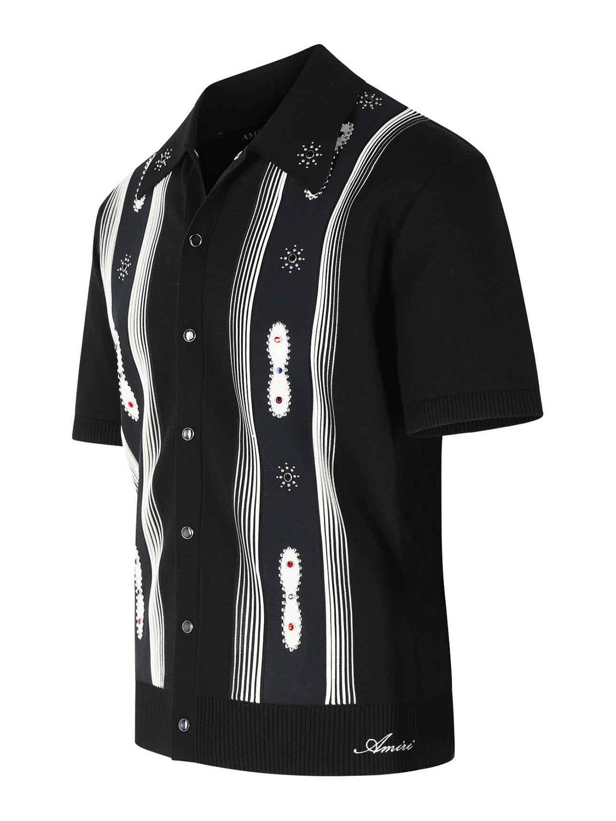 Spitzkragen, Druckknopf auf der Vorderseite, kontrastfarbene Frontdetails, dekorative Applikationen mit Diamanten, gerippter Saum und Ärmelabschlüsse, kontrastierende Logostickerei am Saum