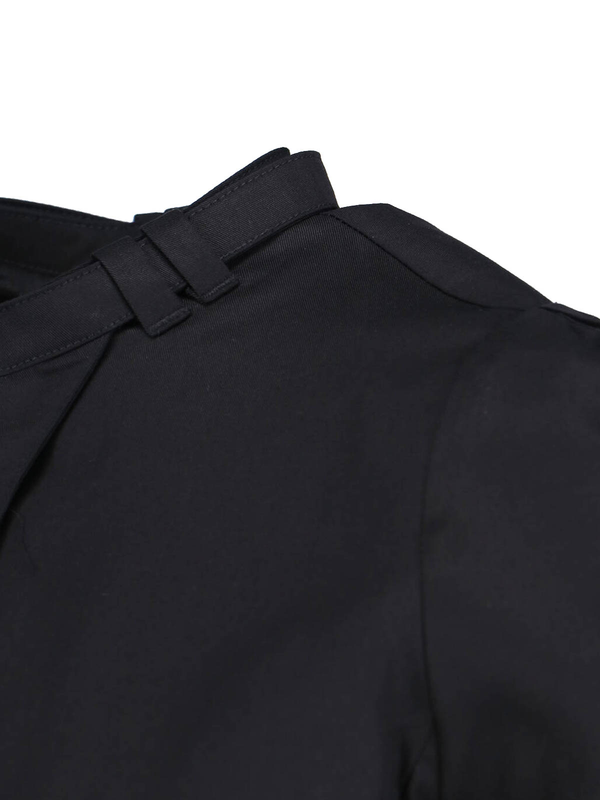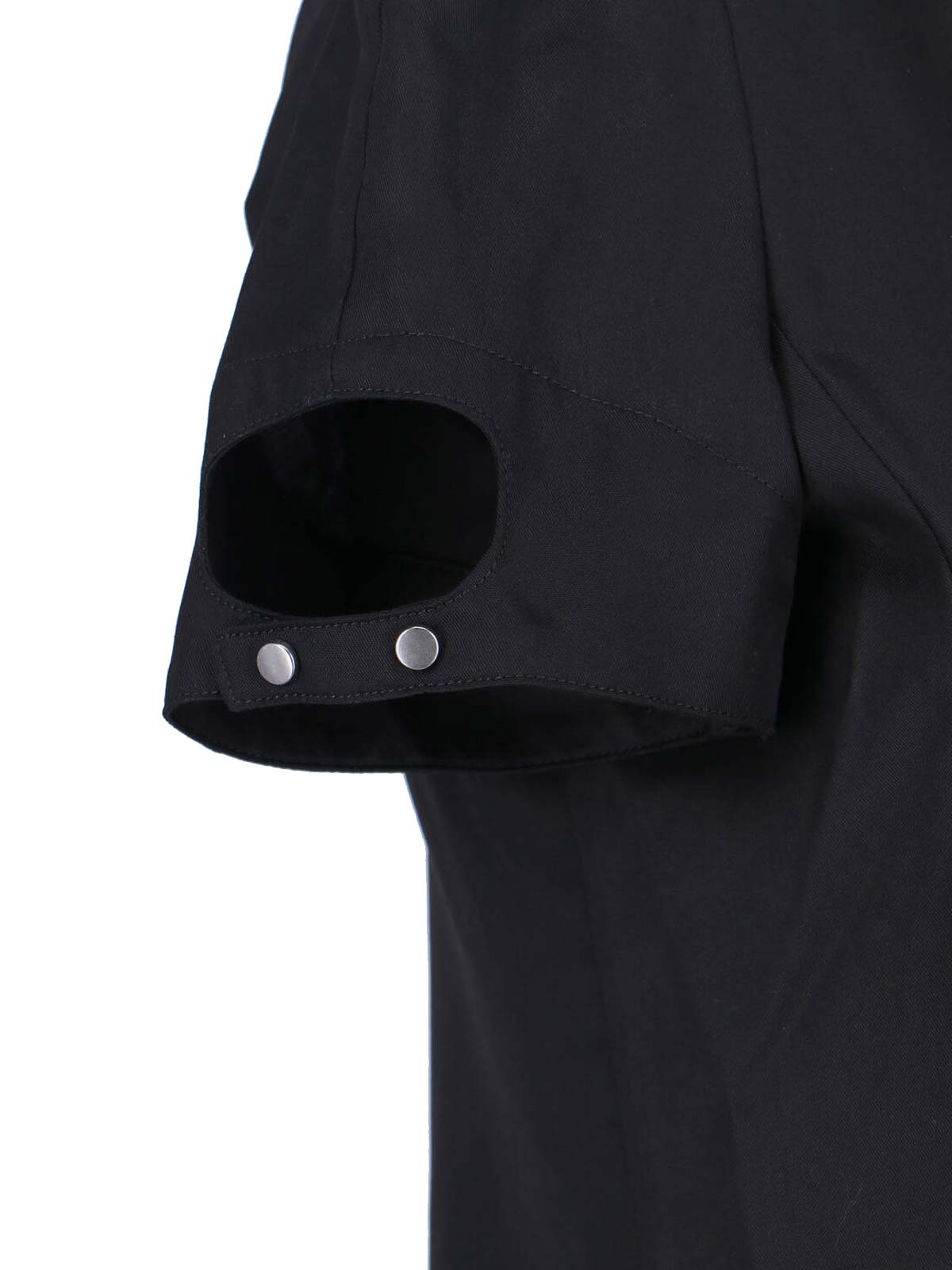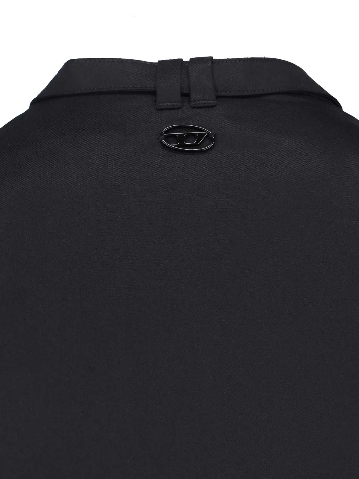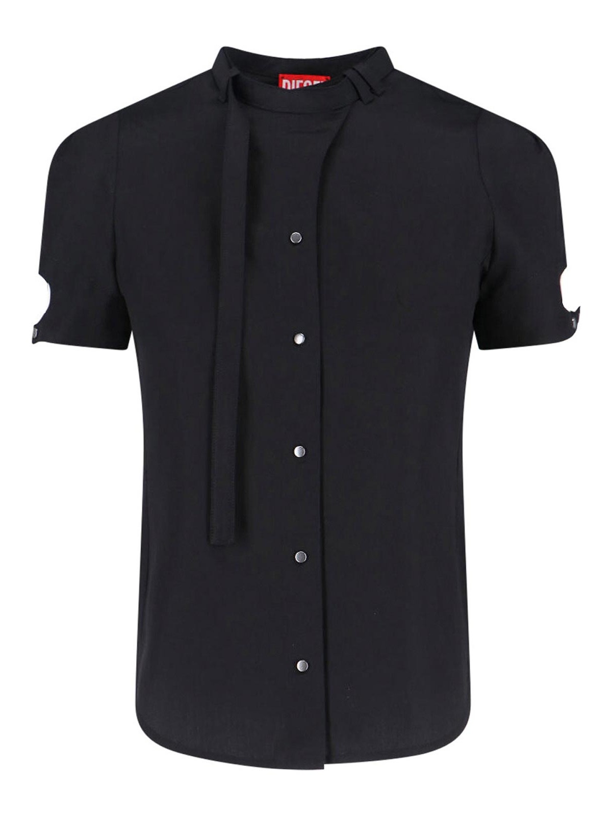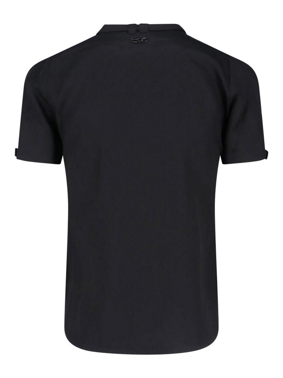 Diesel C-India Shirt aus schwarzem Lyocell, runder Halsausschnitt, verstellbare Spitze, Knopfverschluss, Cut-Out-Detail an den Ärmeln, ovales D-Logo auf der Rückseite, geschwungener Saum.