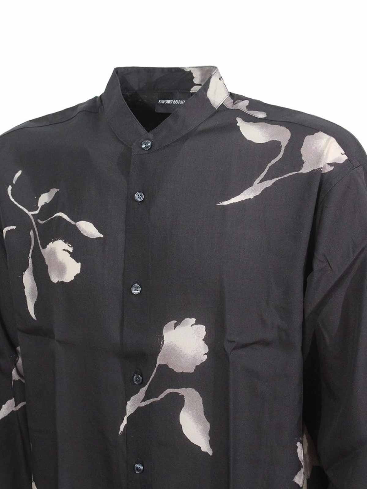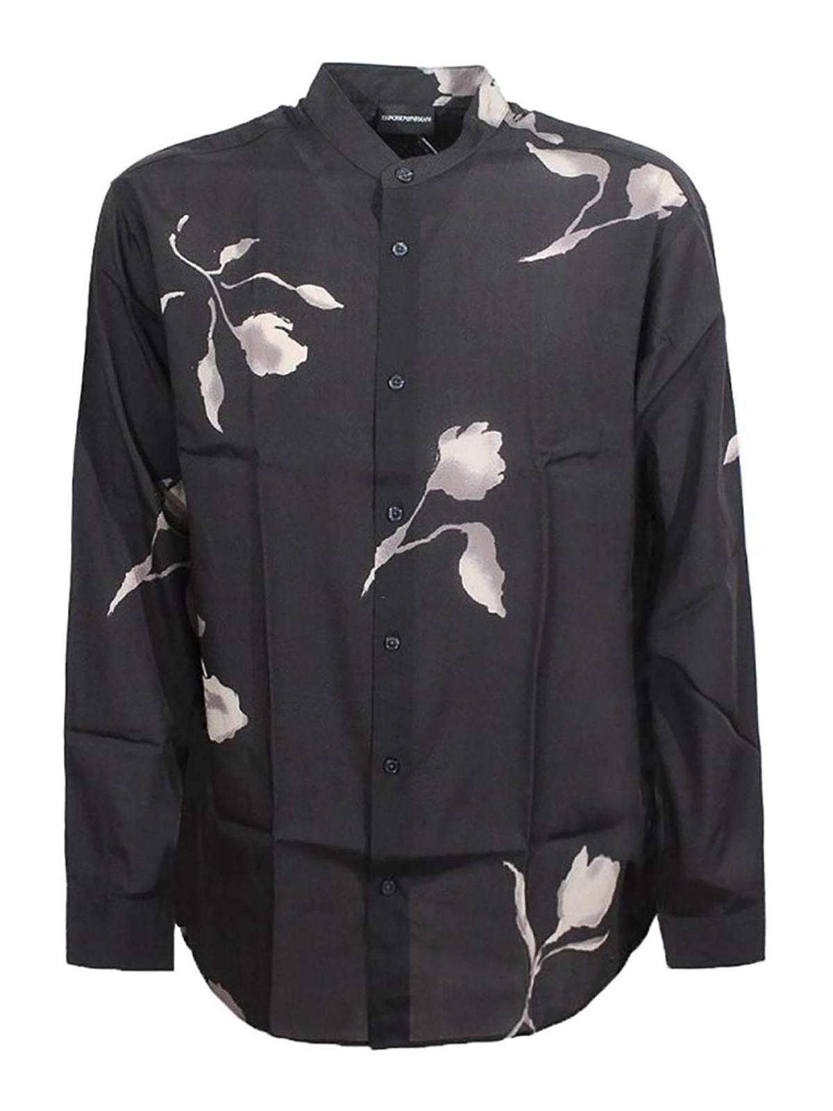Emporio Armani Hemd mit Mandarinkragen, Knopfverschluss auf der Vorderseite, langen Ärmeln, Blumendruck.