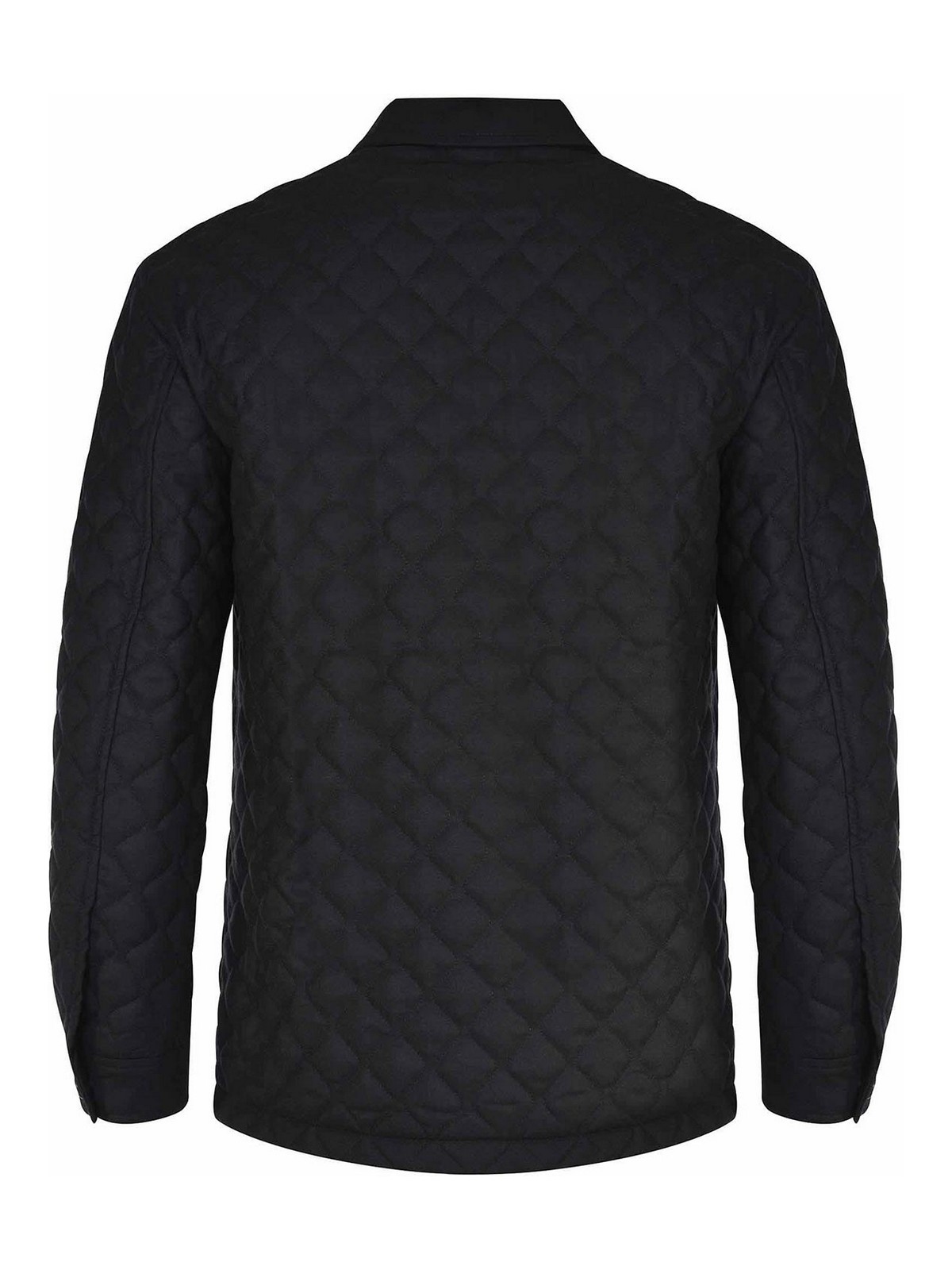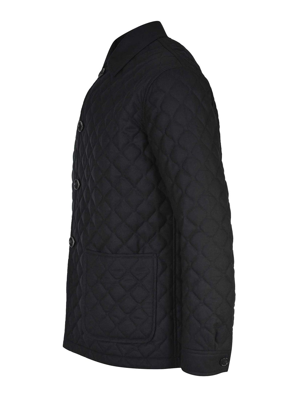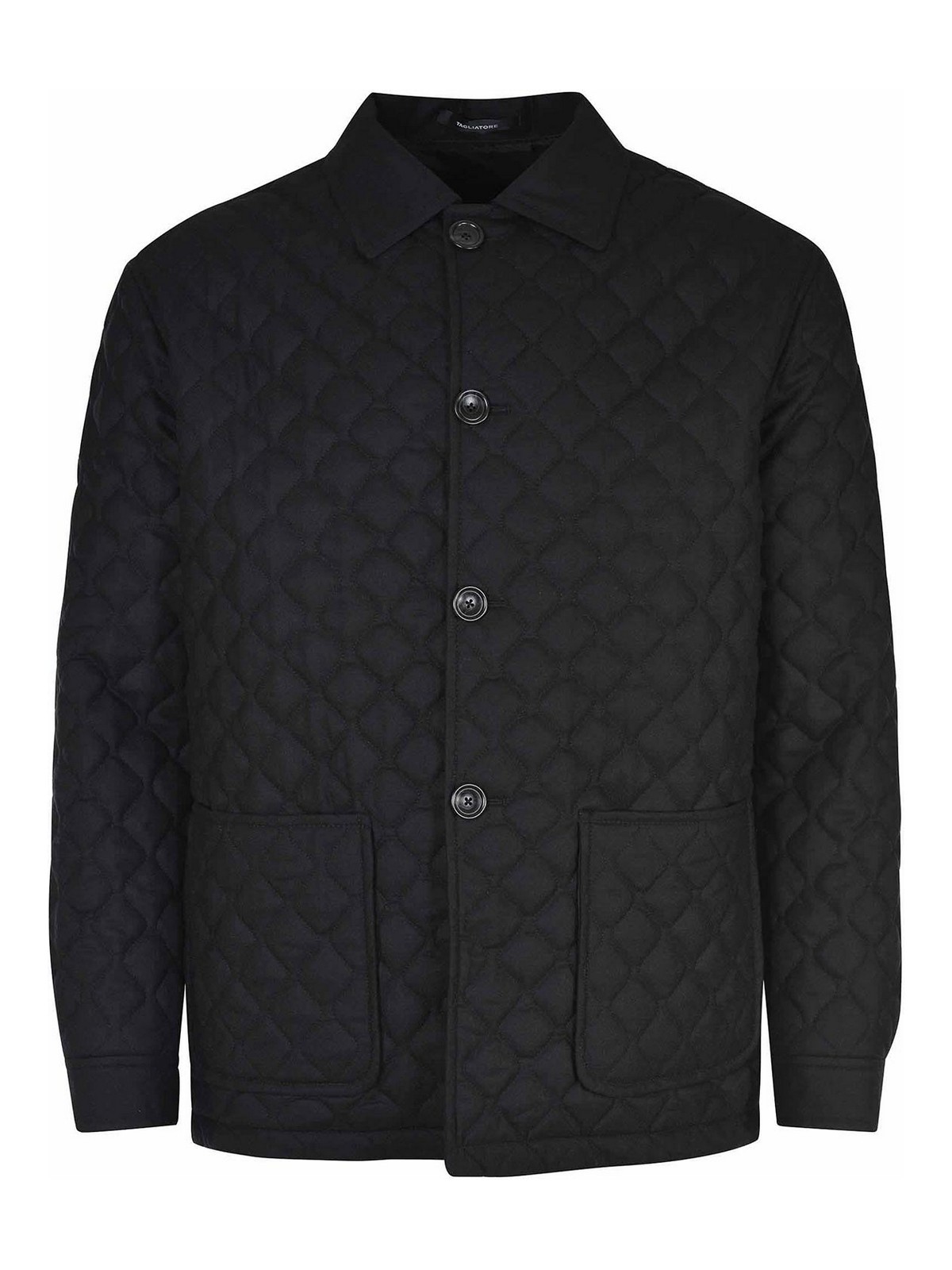 Tagliatore-Jacke aus schwarzer Wollmischung. Gesteppt. Hemdkragen. Knopfverschluss. Lange Ärmel. Manschetten mit Knöpfen. Seitentaschen. 99% Wolle, 1% Elastan. Hergestellt in Italien.