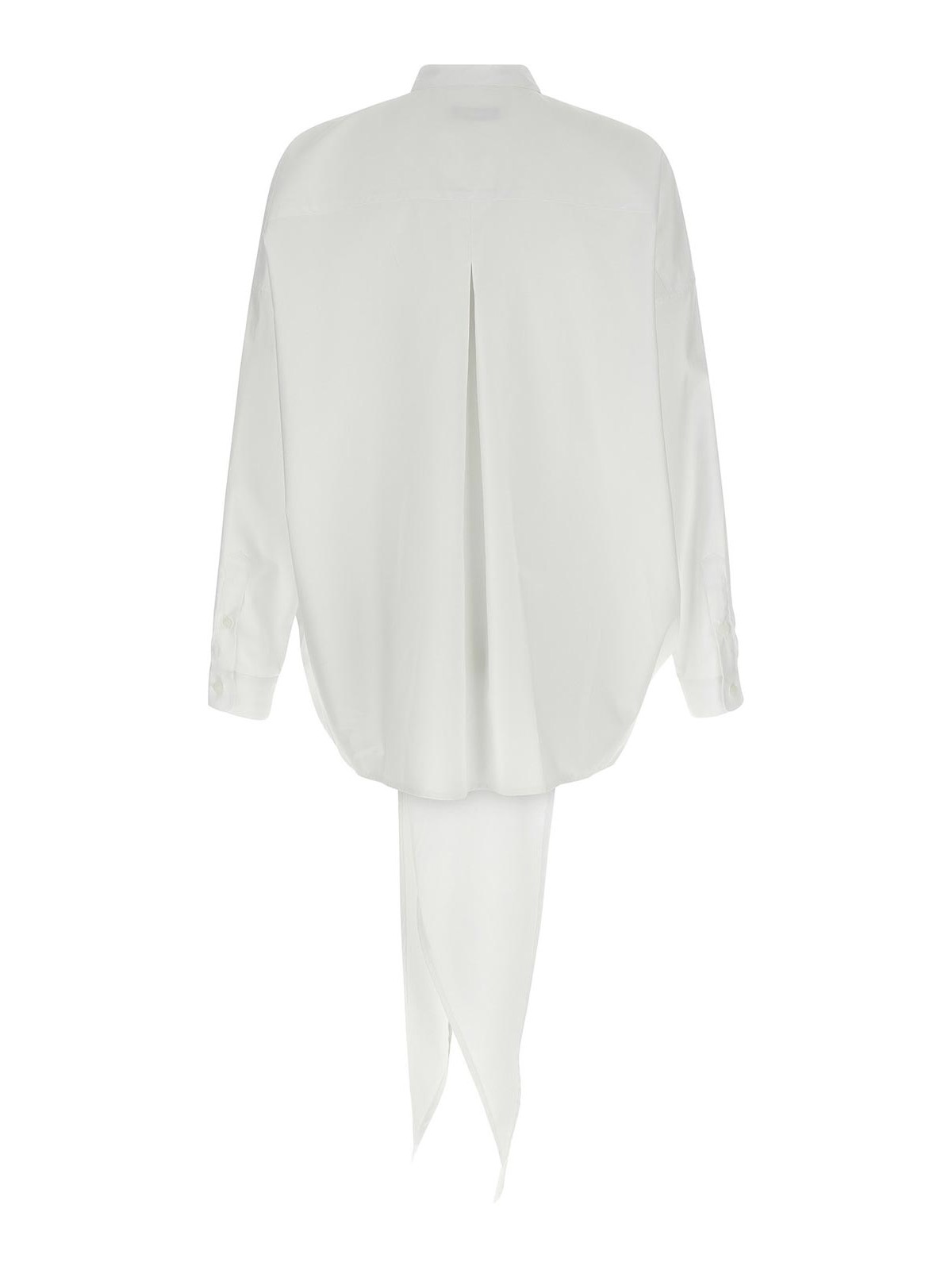 Romys Hemd zum Binden in der Taille aus leichter Baumwollpopeline mit Knopfverschluss auf der Vorderseite, langen Ärmeln mit Manschetten und abgesenkten Schultern, asymmetrischer Saum.