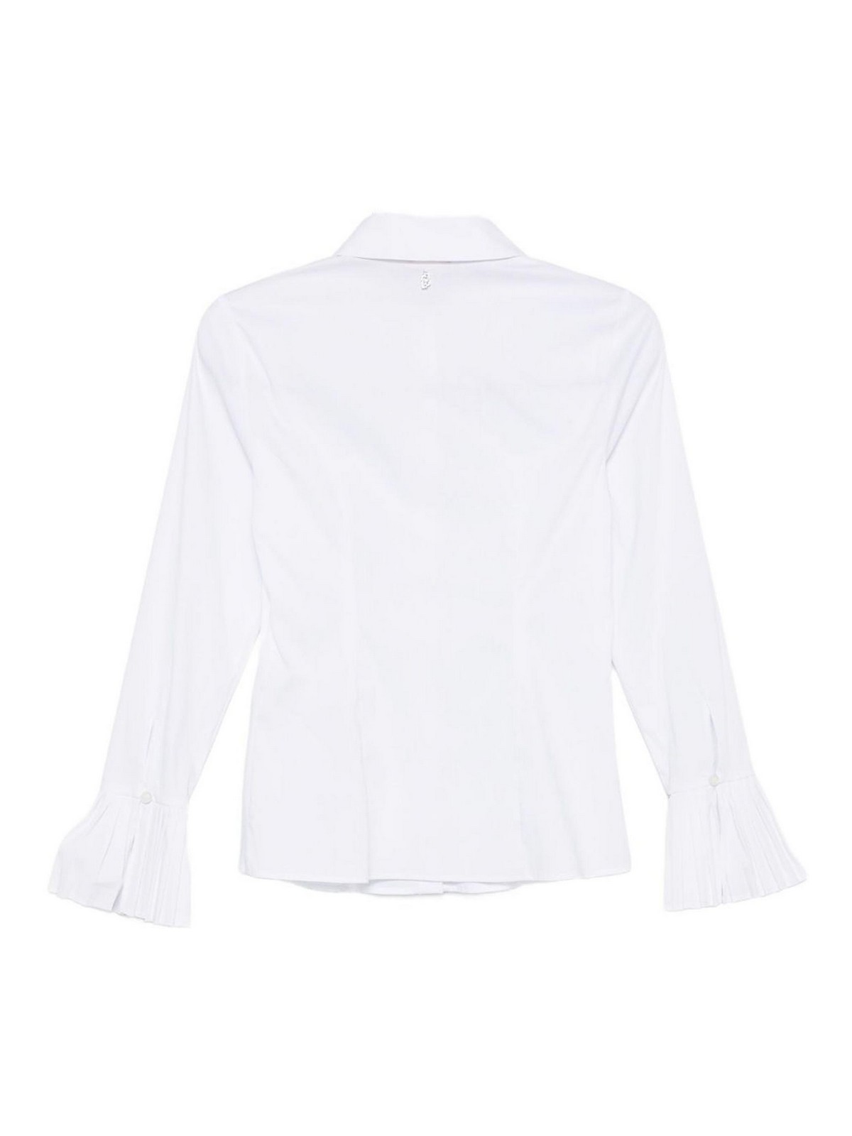 Weiße Dreiviertelärmel, plissierte Manschetten, klassischer Kragen mit Knopfverschluss