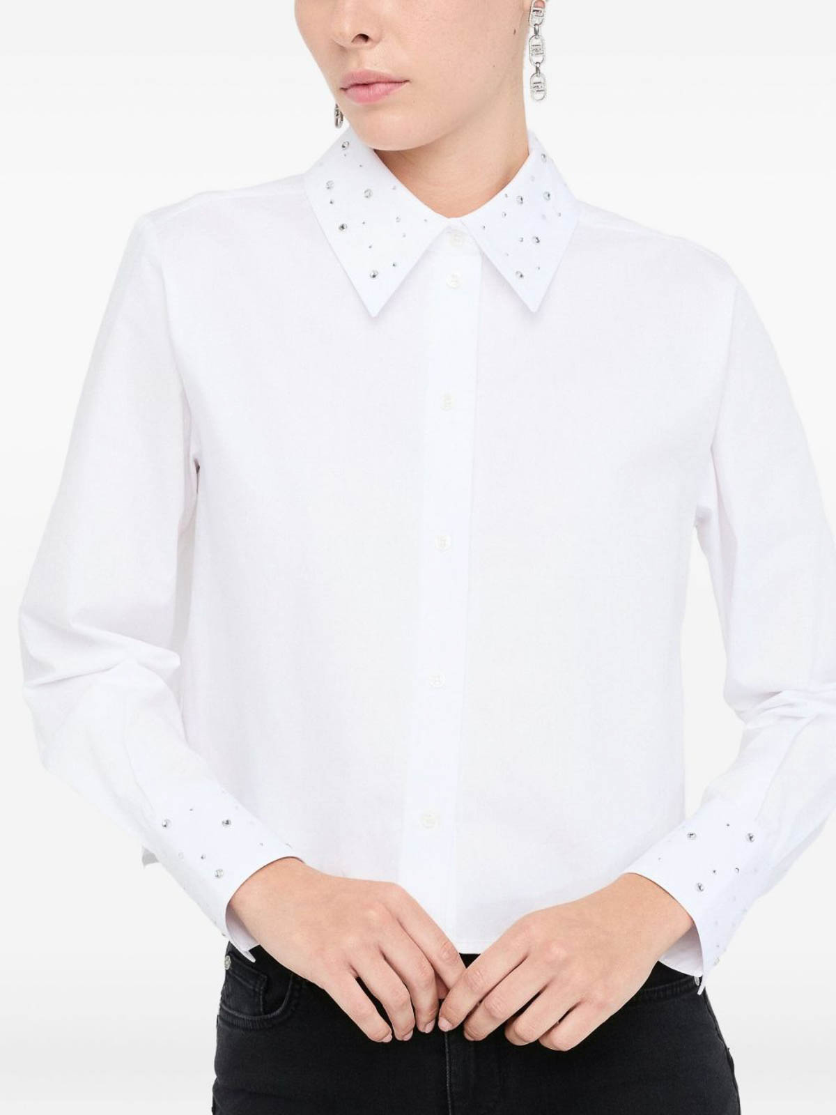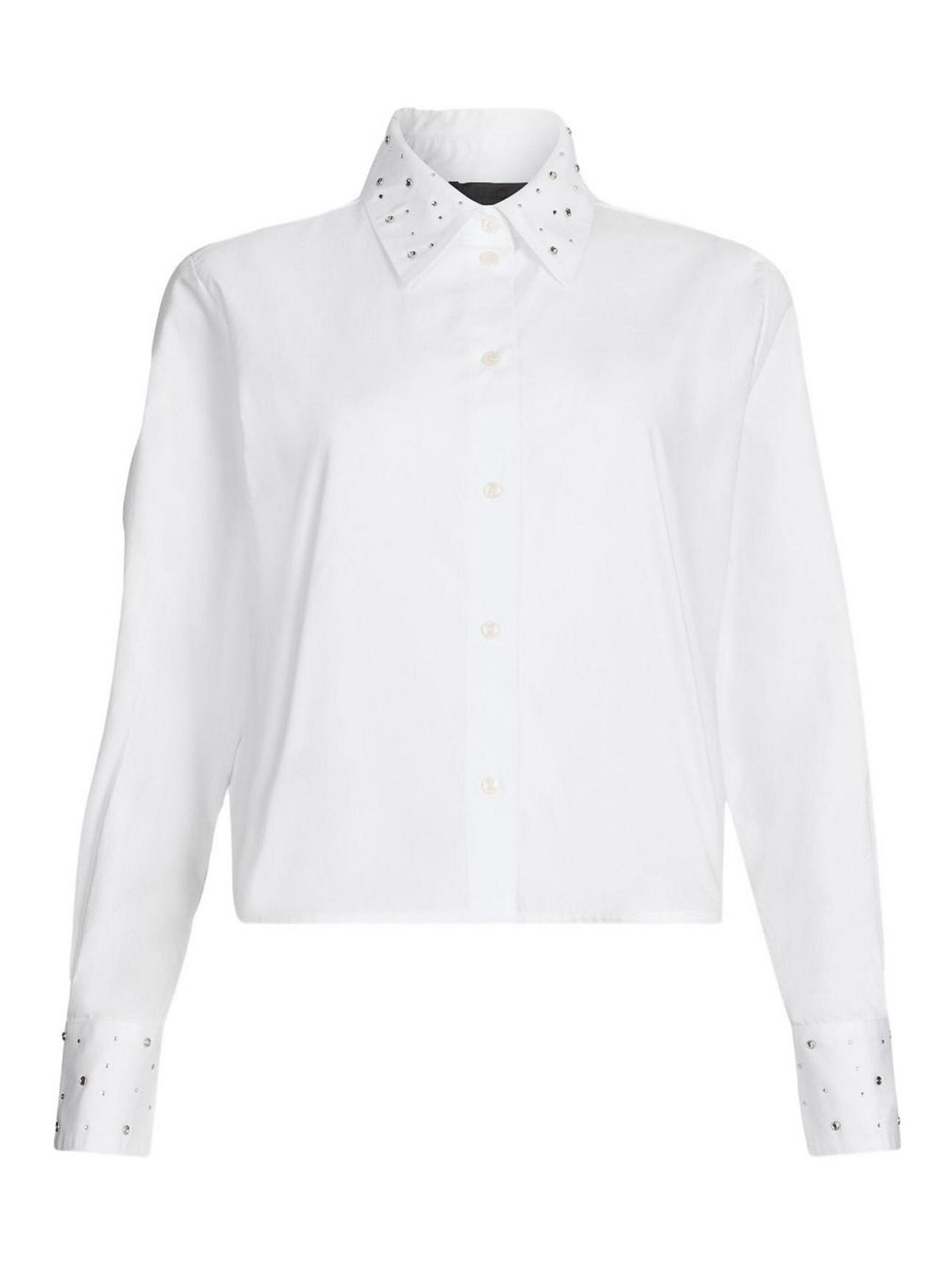 Weiße klassische Kragenverzierung, lange Ärmel, Manschetten, juwelenbesetzter Knopf, verdeckt