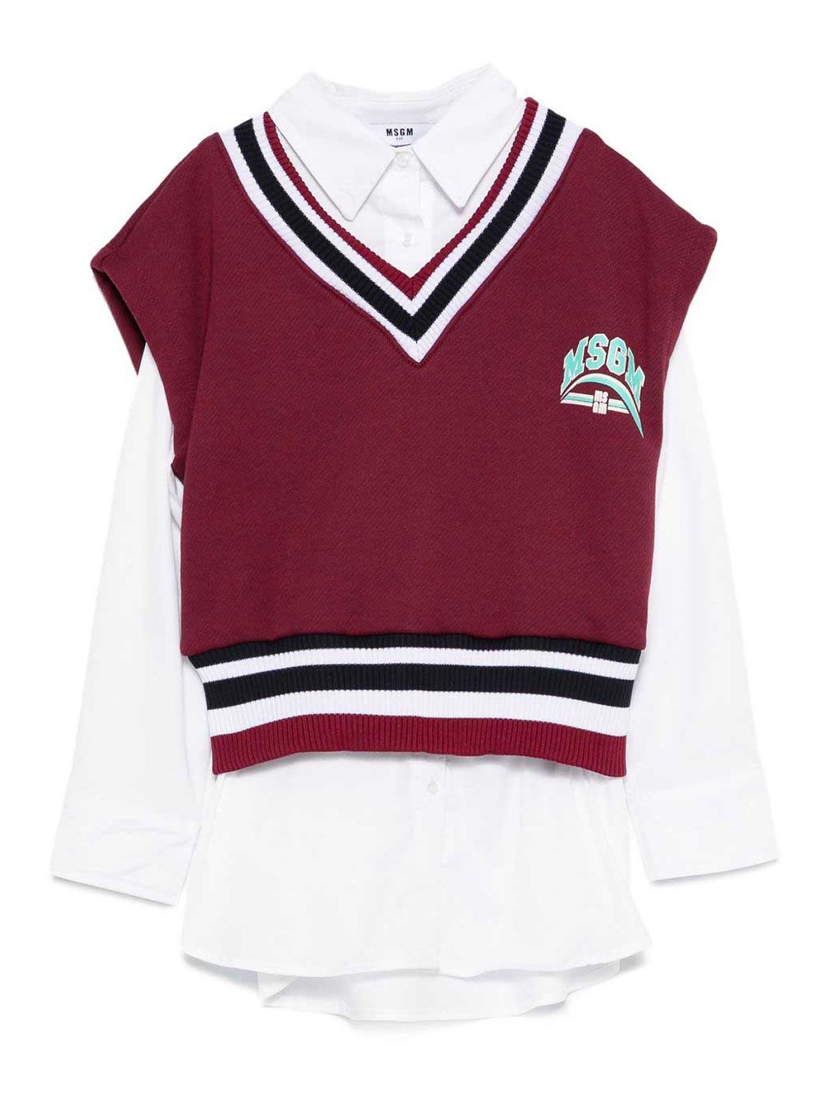 Msgm Bordeauxrote Fleeceweste für Mädchen mit weißem Hemd