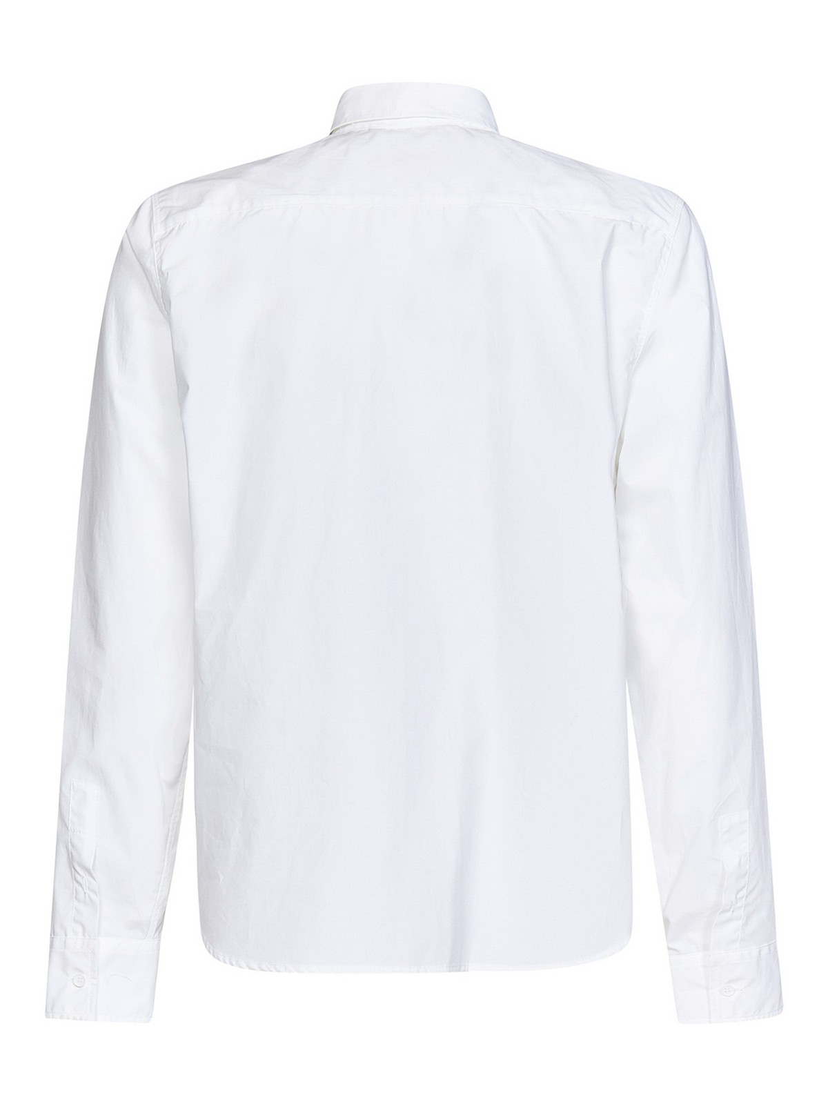 Vorderer Verschluss mit Knöpfen, spitzer Kragen mit silbernen Metallenden, Ton-in-Ton-Logostickerei auf der Vorderseite, lange Ärmel, geknöpfte Manschetten, weiße Baumwolle, der Artikel auf dem Foto entspricht Größe M