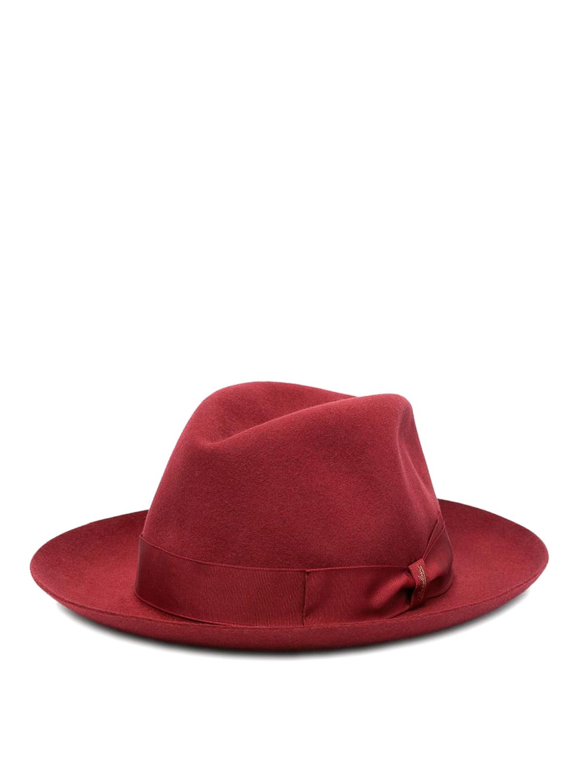 Bordeauxrote Schleife aus Ripsband aus Filz mit breiter Krempe