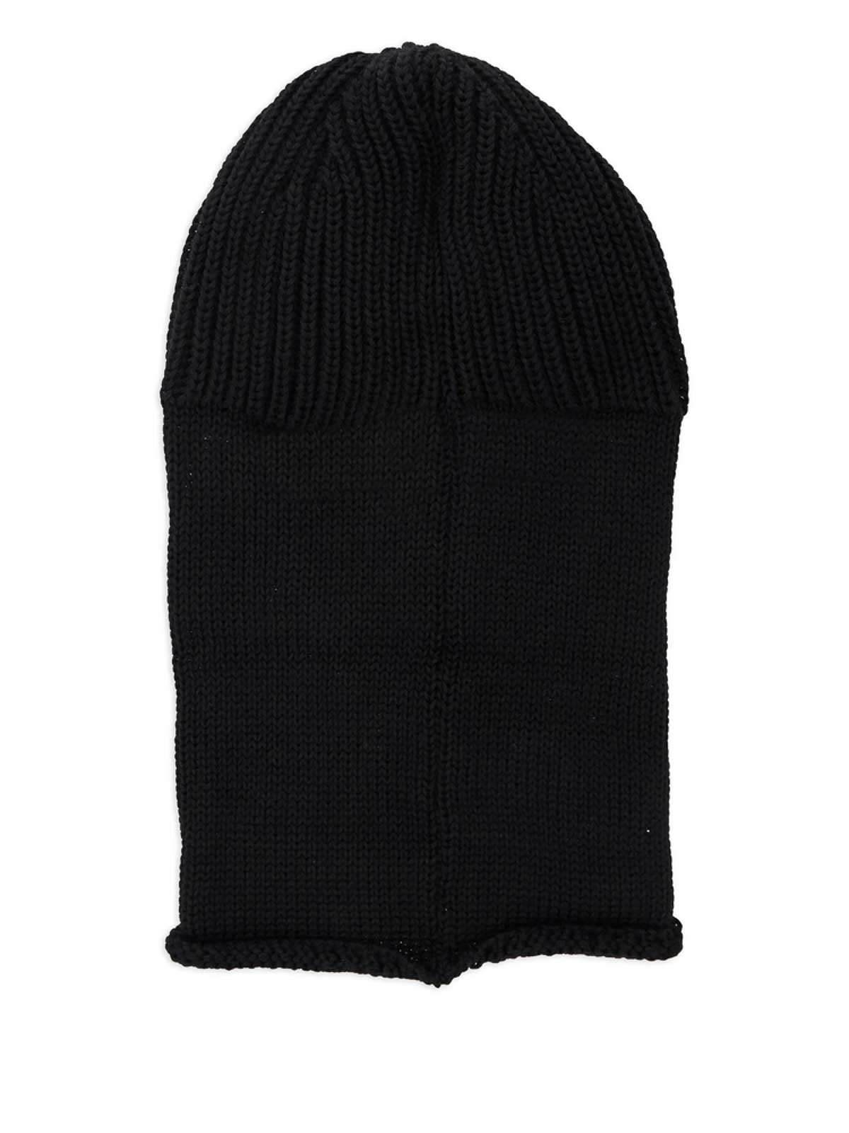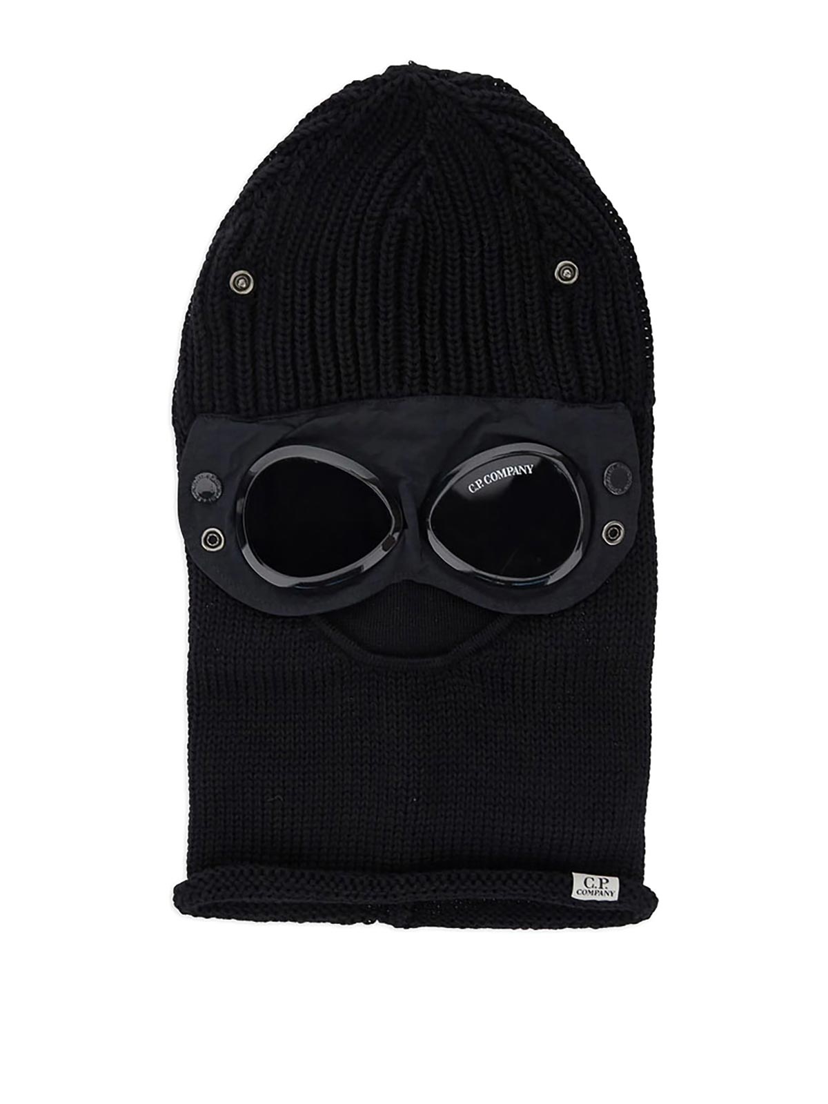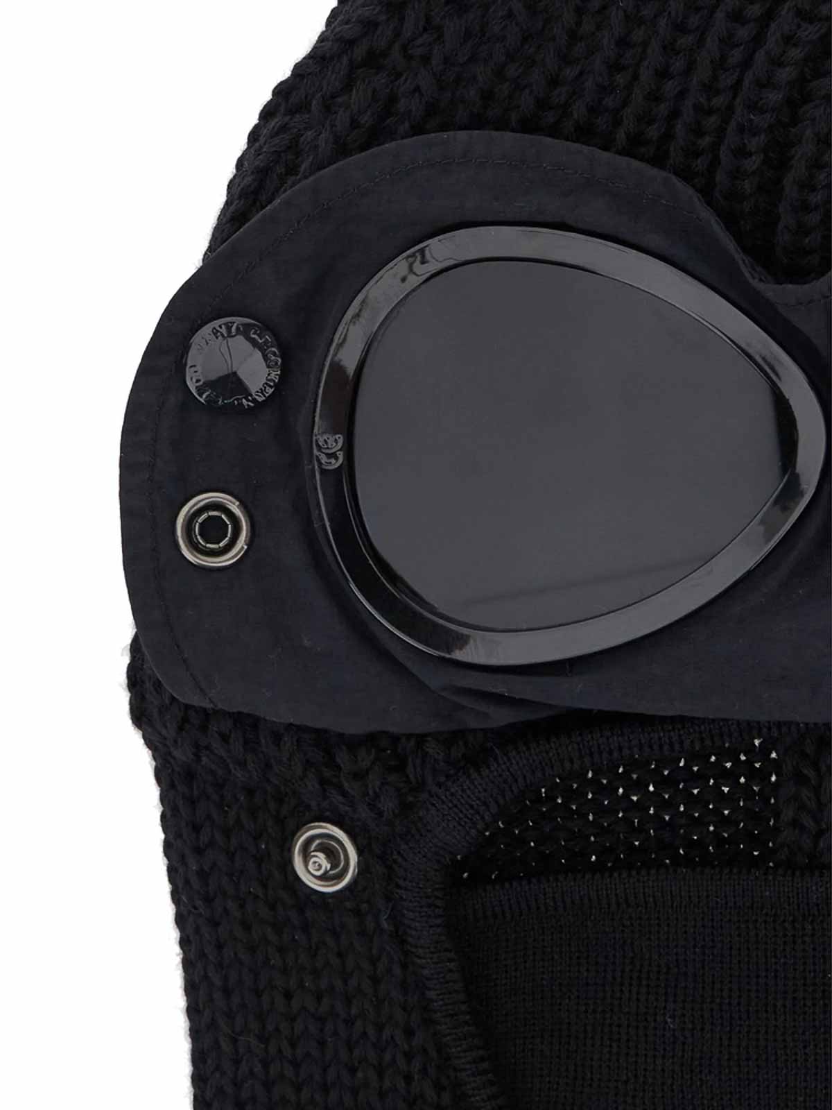 Schwarze Strickstruktur, integrierte Brille, Knopfverschlüsse, gerippter Rand bedeckt das Gesicht vollständig