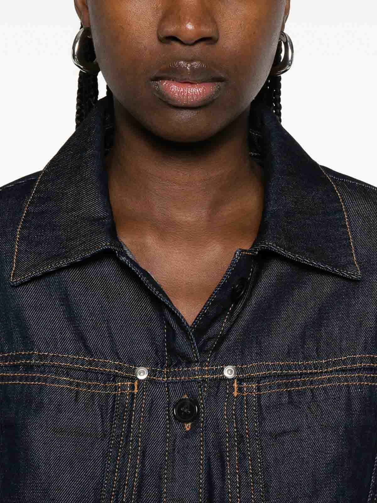 Indigoblaue Fronttaschen mit Knopfverschluss, lange Ärmel, silberfarbene Hardware, Gürtelschlaufen