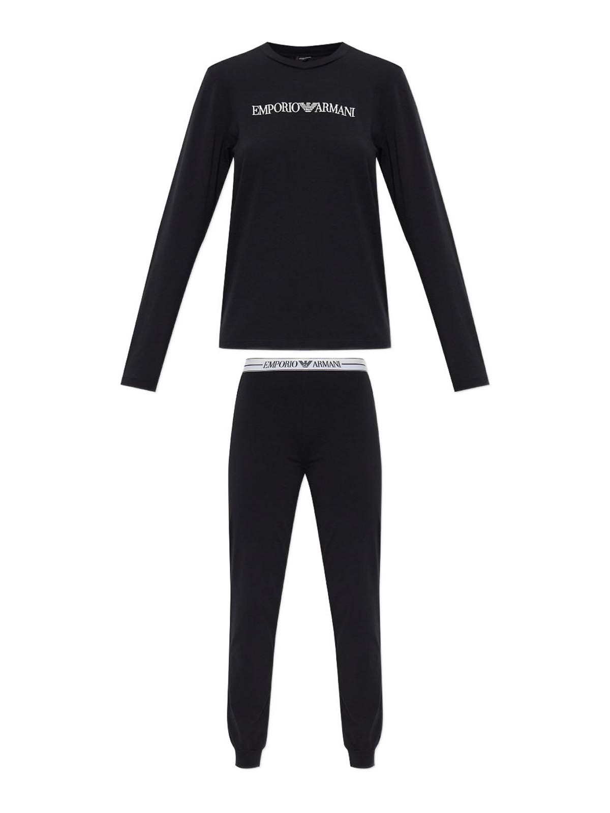 Schwarzes gesticktes Logo, lange Ärmel, elastischer Bund, Bündchen, Hose aus Baumwollmischung