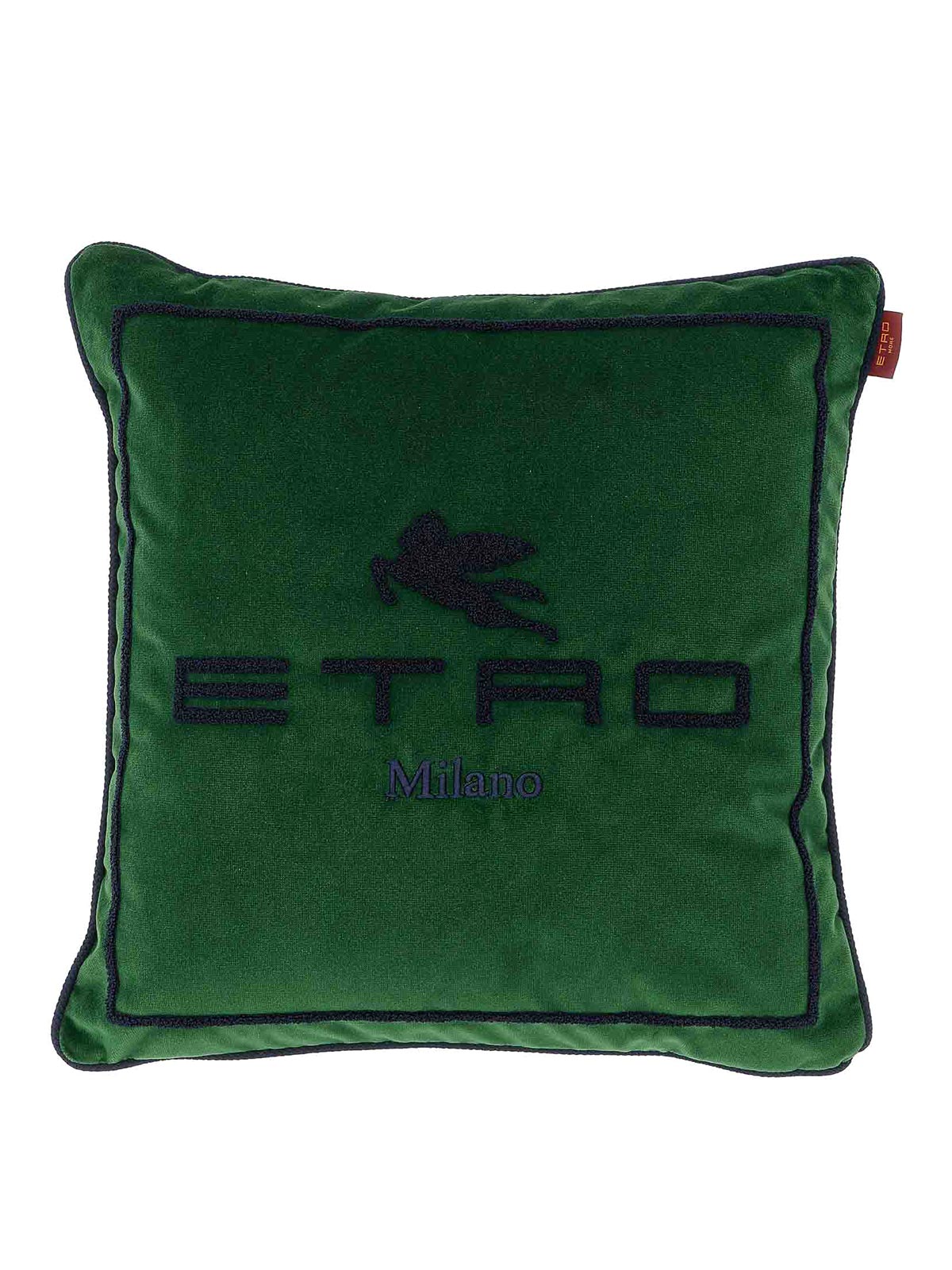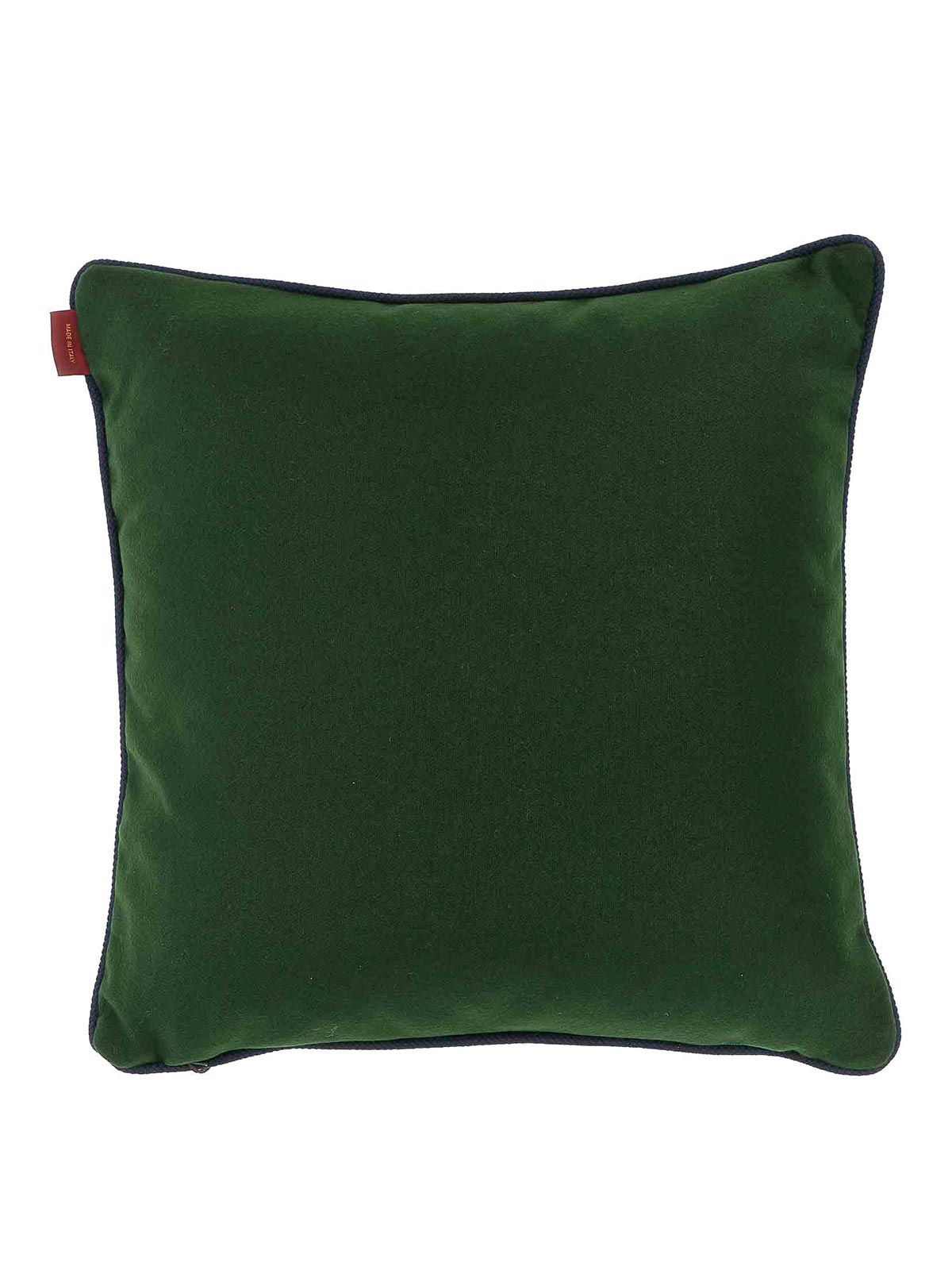 Kissen aus peachierter und cooler Wollbaumwolle, Logostickerei aus Frottee auf der Vorderseite, seitlicher Reißverschluss.