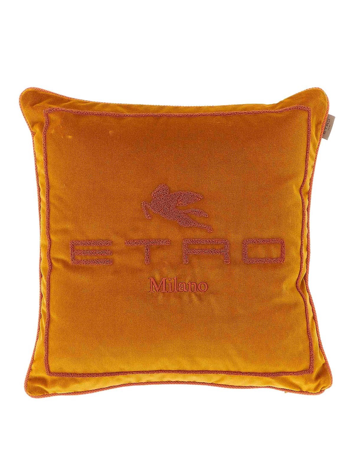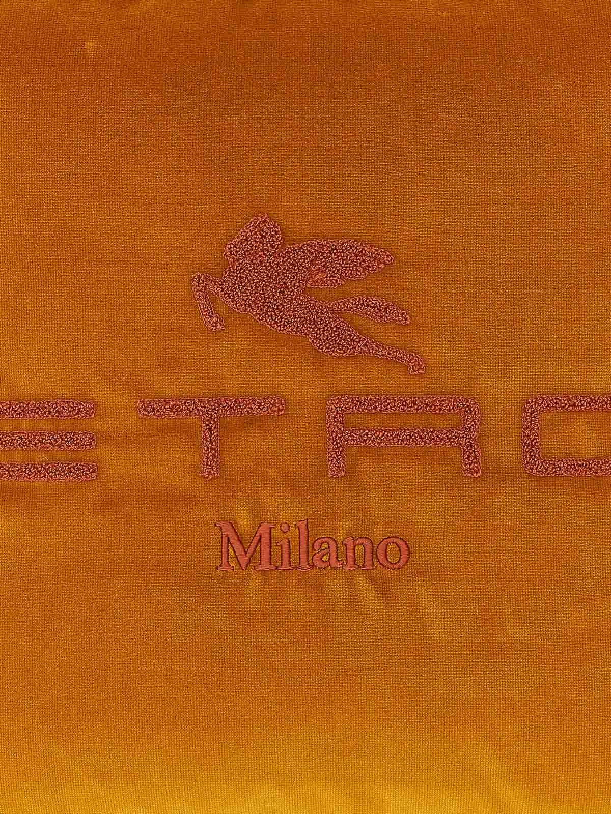 Kissen aus peachierter und cooler Wollbaumwolle, Logostickerei aus Frottee auf der Vorderseite, seitlicher Reißverschluss.