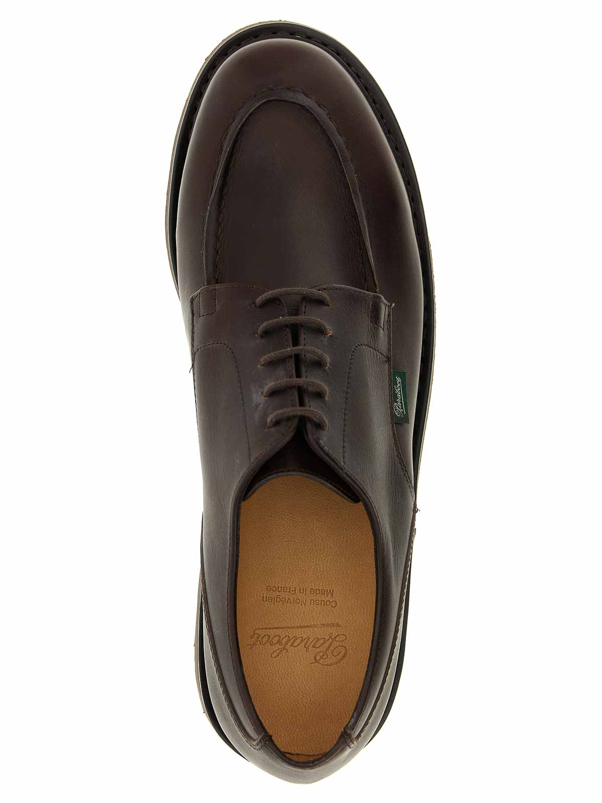 Derbyschuhe aus Leder von Chambord mit 45-Zehenkappe, Schnürsenkeln, norwegischen Nähten, Gummisohle. Die Paraboot-Produkte werden einer Behandlung unterzogen, die die Echtheit und Frische des Leders bewahrt. Patina kann sich bei Nichtgebrauch bilden. Entfernen Sie sie einfach mit einem feuchten Tuch.
