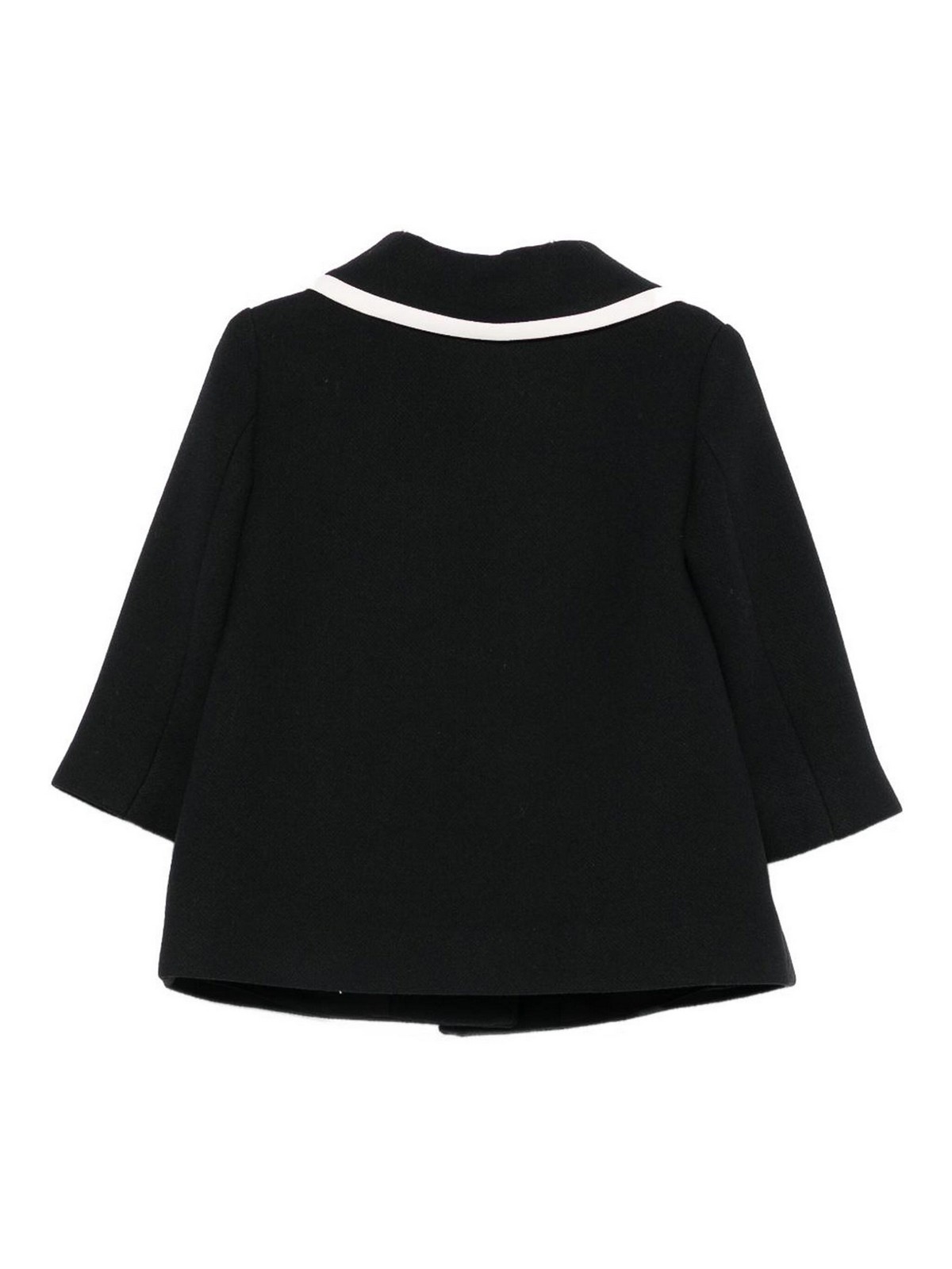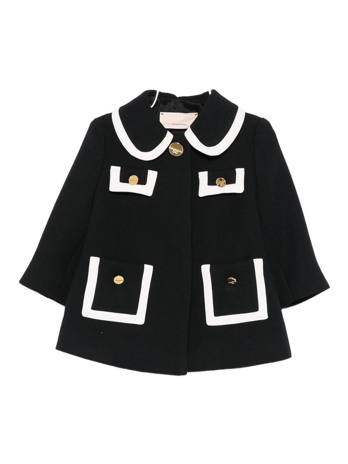 Mantel mit schwarzen Knöpfen, Peterpan-Kragen, Taschen und Knöpfen mit Logo