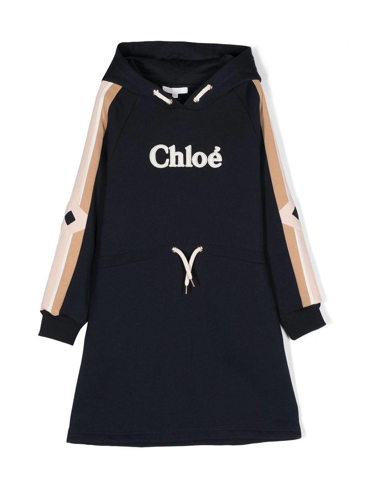 Marineblaues Chloe-Sweatkleid aus Baumwolle mit Kapuze für Mädchen