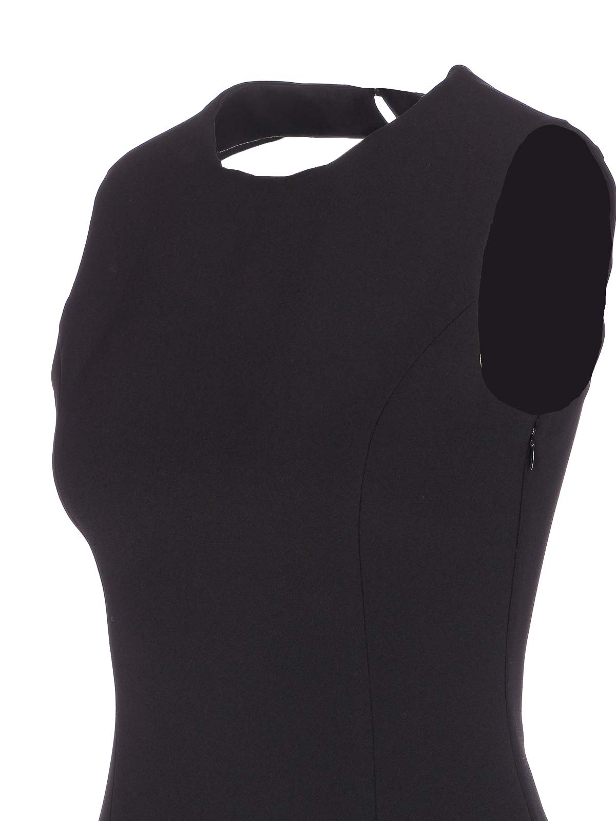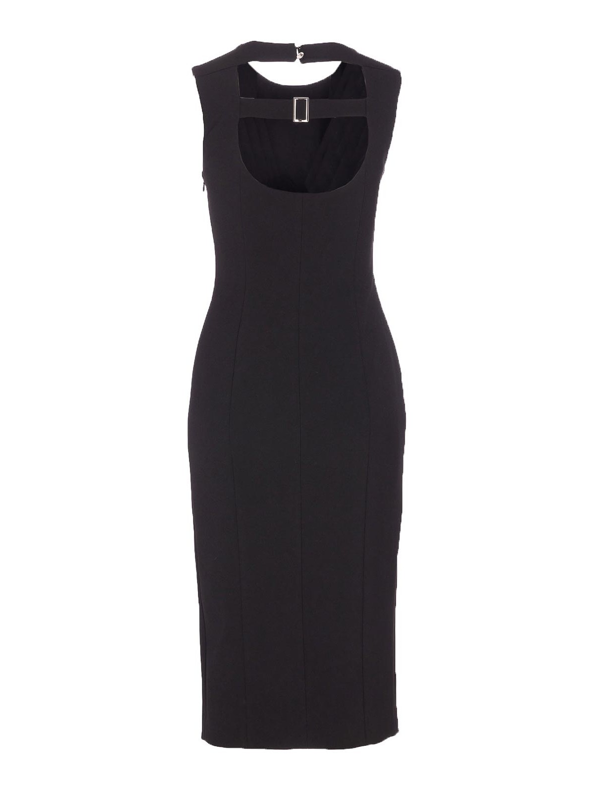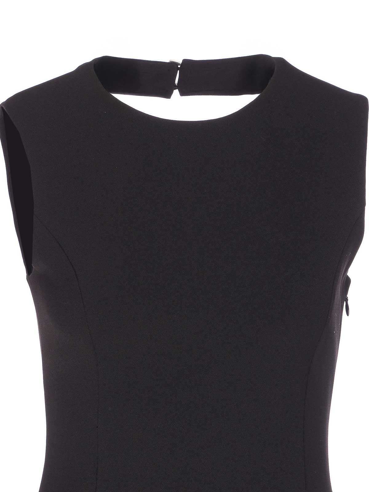 Liu Jo schwarzes Kleid, Rundhalsausschnitt, Knopf mit Juwelendetails auf der Rückseite, Reißverschluss an der Seite, Midi-Modell,