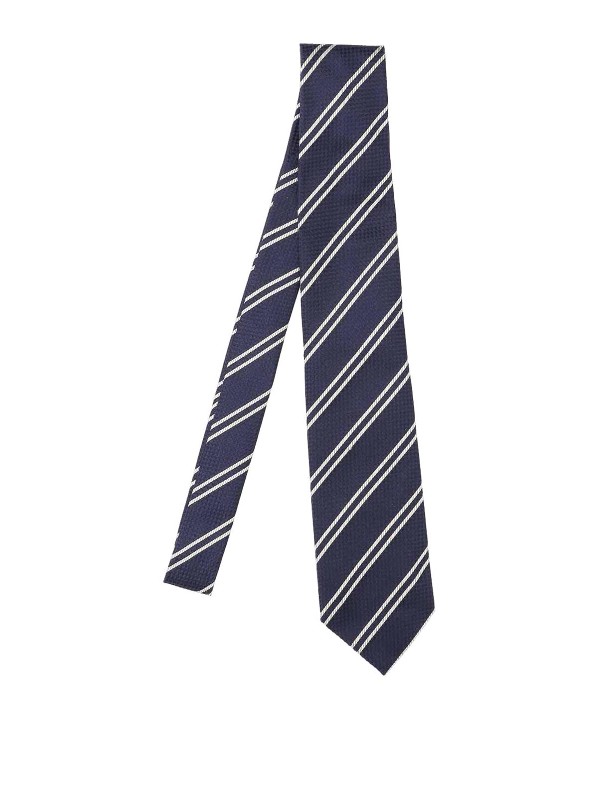 Tom Ford gestreifte Krawatte aus blauer Maulbeerseide, weiße Details, verstellbar.