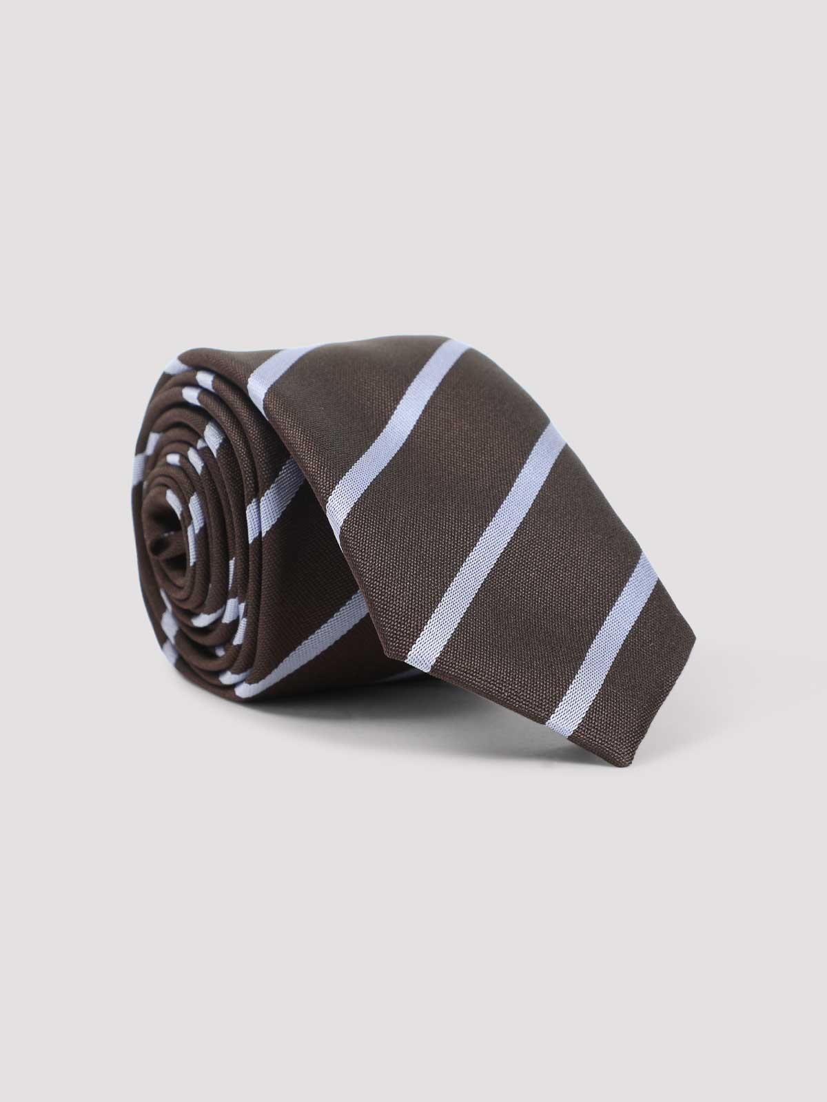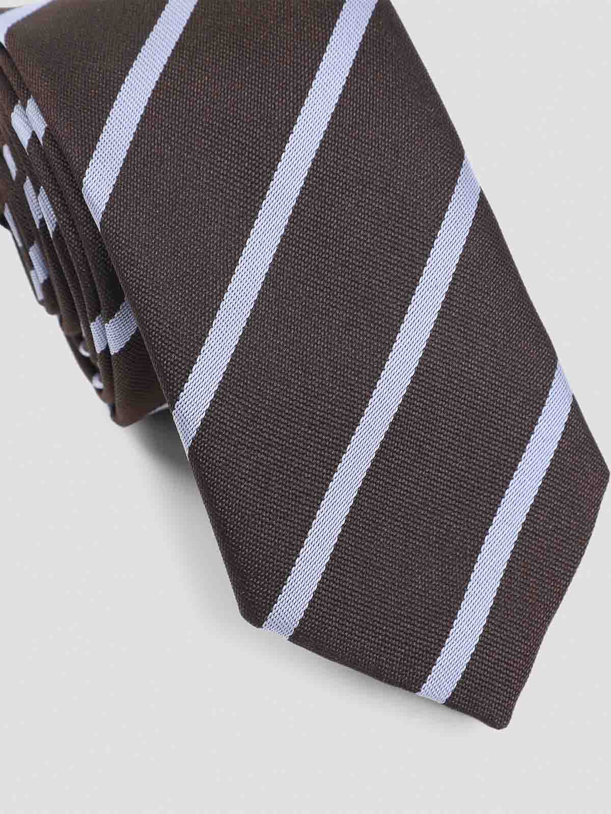 Die gestreifte braune Krawatte von Frankie Shop Lene ist aus braun und hellblau gestreiftem klassischem Design gefertigt