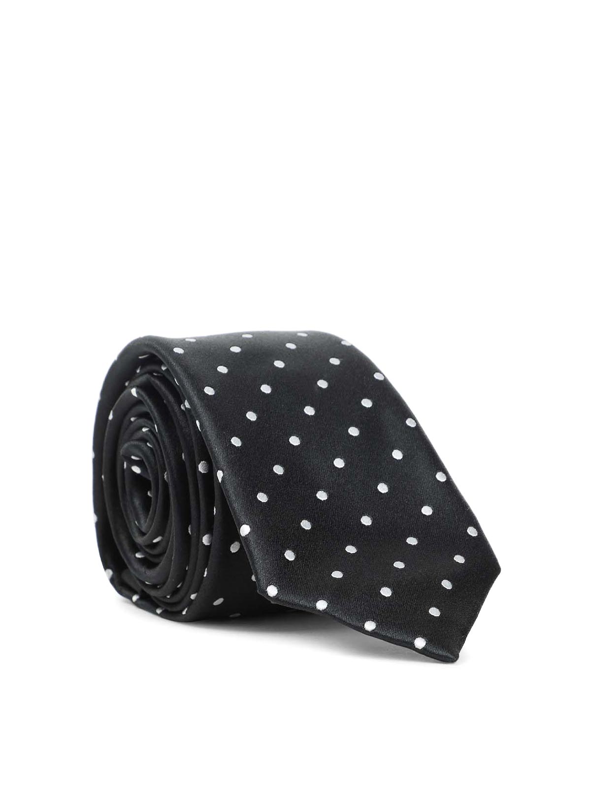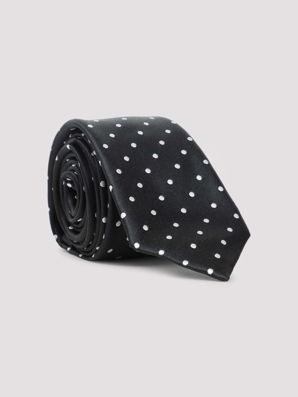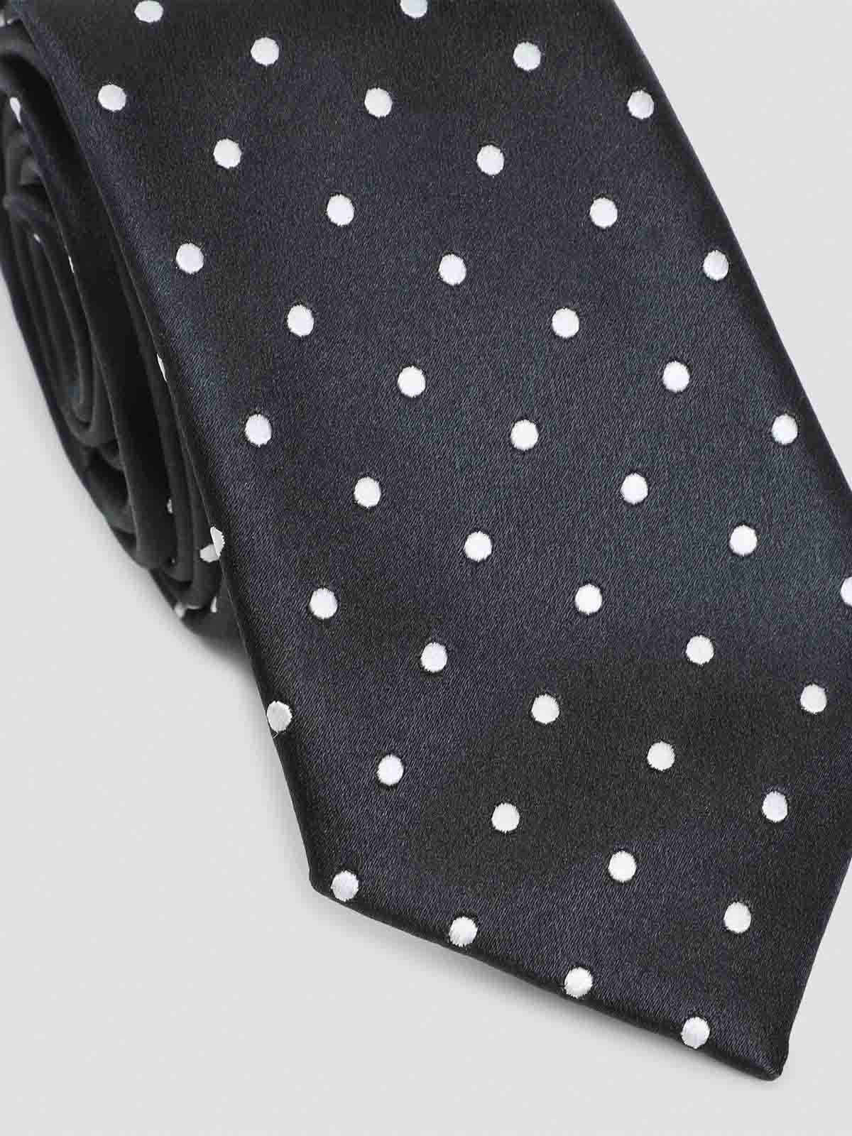 Tom Ford schwarze Maulbeer-Krawatte, reine schwarze Maulbeerkrawatte, kontrastierendes weißes Tupfenmuster, rundum, über verstellbares Design