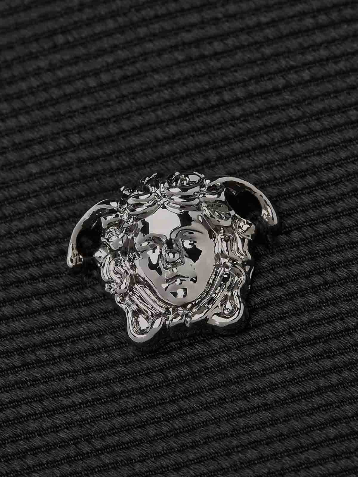 Schwarze Krawatte mit Medusa-Logo von Versace, Logodetail