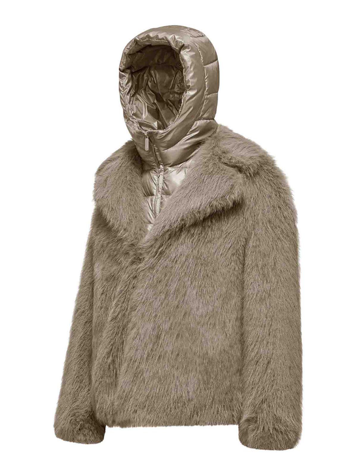 Bomboogie Paris Mantel Damen Kurzmantel wasserabweisend Kunstfell kurzer Damenmantel, der Eleganz und thermischen Komfort vereint aus langhaarigem Kunstfell bietet effektive Isolierung und ein Gefühl von einhüllender Weichheit an kalten Tagen der reguläre einreihige Schnitt betont die Silhouette, während das breite Revers einen Hauch von raffinierter Eleganz verleiht die mit Metallhaken gibt Praktikabilität und Modernität, während eine saubere und raffinierte Linie intern garantiert Leichtigkeit, Komfort und Widerstandsfähigkeit zum Tragen im Laufe der Zeit ein vielseitiges und Funktionsbekleidung Perfekt zur Ergänzung der Wintergarderobe mit modernem Langhaar-Kunstfell für umhüllende Wärme, regulärer einreihiger Schnitt, der die Silhouette betont, breites Revers für raffinierte Eleganz, Vorderseite mit internem Metallhaken für Komfort und Haltbarkeit, widerstandsfähiger und pflegeleichter Kunststoff
