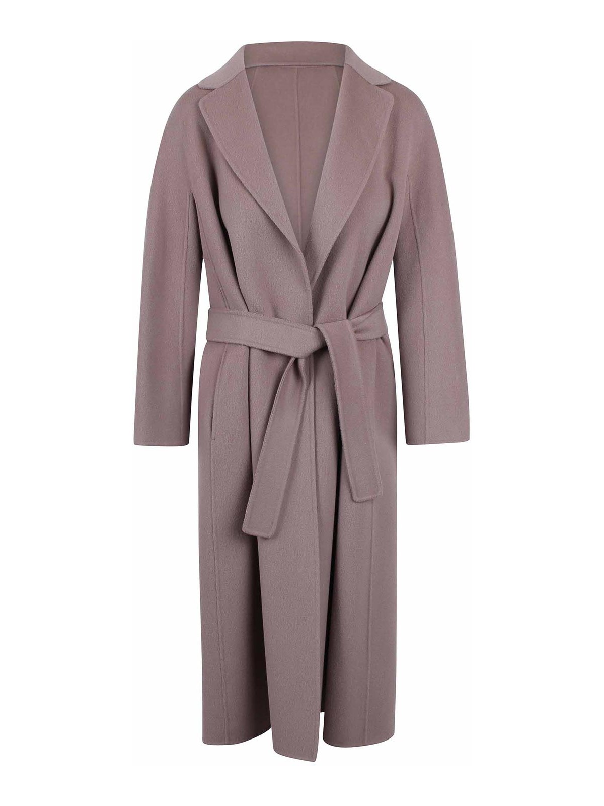 Midimantel von S'Max Mara unverzichtbares und einzigartiges Kleidungsstück für zeitlose Drap doppelt genäht handgenäht mit kleinen Revers langen Ärmeln mit Kimono mit kombiniertem Gürtel Passanten Gürtel Seitentaschen s bis