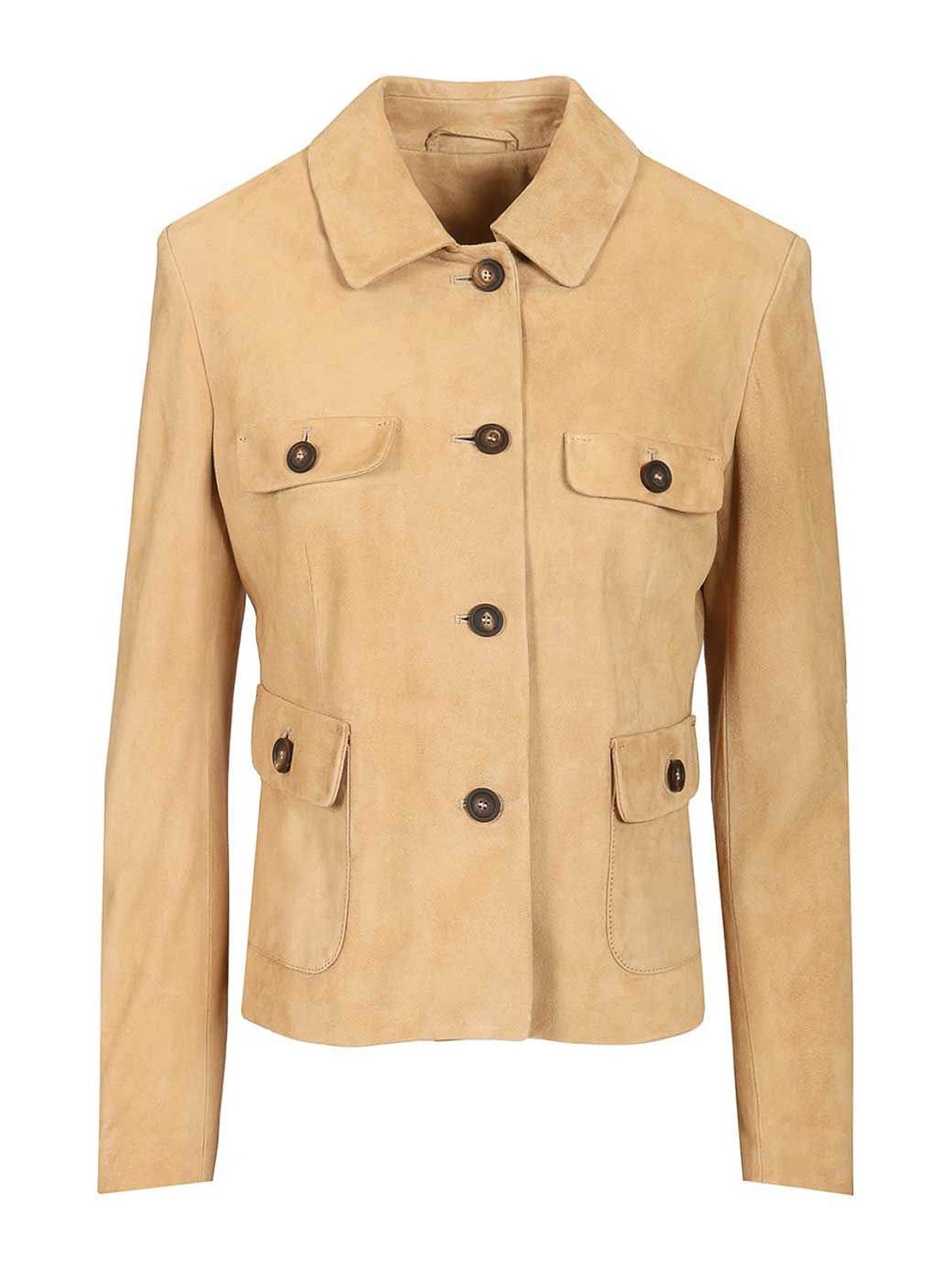 Wildlederjacke mit Hemdkragen, aufgesetzten Taschen mit Knöpfen und Knopf