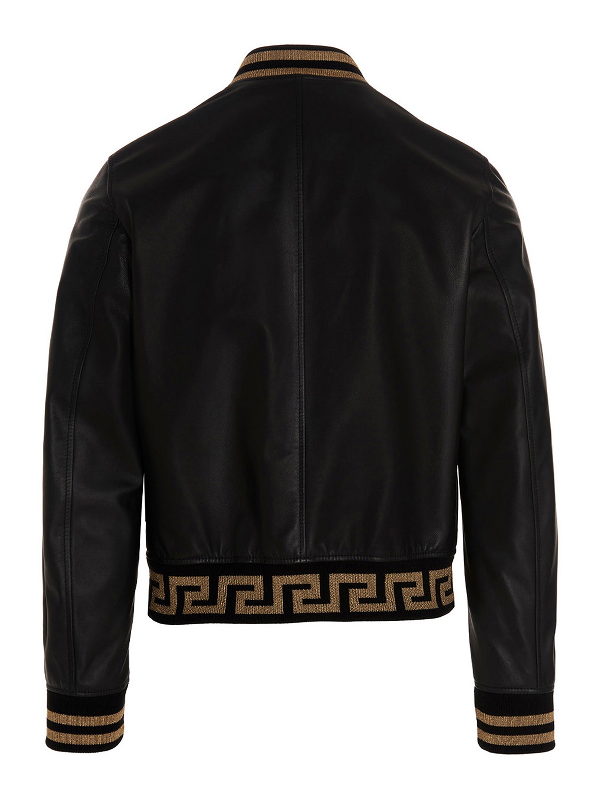 Versace Bomberjacke aus Nappaleder mit Reißverschluss, Bündchen und elastischem Bund mit griechischer Intarsie.