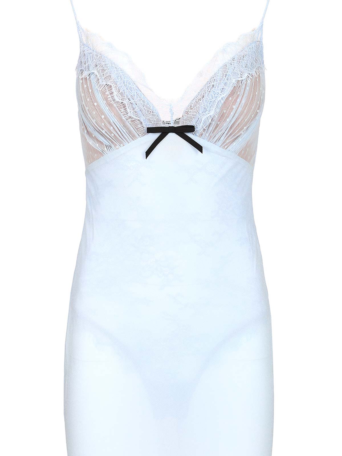 Georgette-Maxikleid im Selbstporträt-Stil mit Spitzenborten, Spaghettiträgern, kontrastfarbenem Schleifendetail unter der Brust, komplett gefüttert mit integriertem Overall