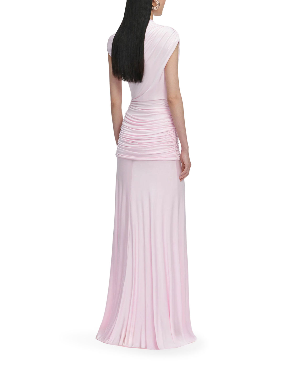 langes drapiertes Kleid, asymmetrischer Schnitt, ausgestellter Saum, Stretchstoff, verdeckter Rückenreißverschluss, Farbe: Rosa