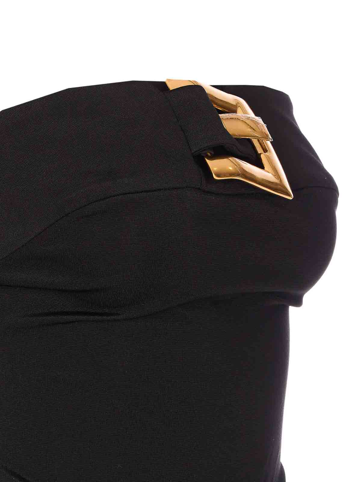Balmain schwarzes Busierkleid mit Gürtel, Reißverschluss auf der Rückseite, schulterfrei, U-Boot-Ausschnitt, langes Modell