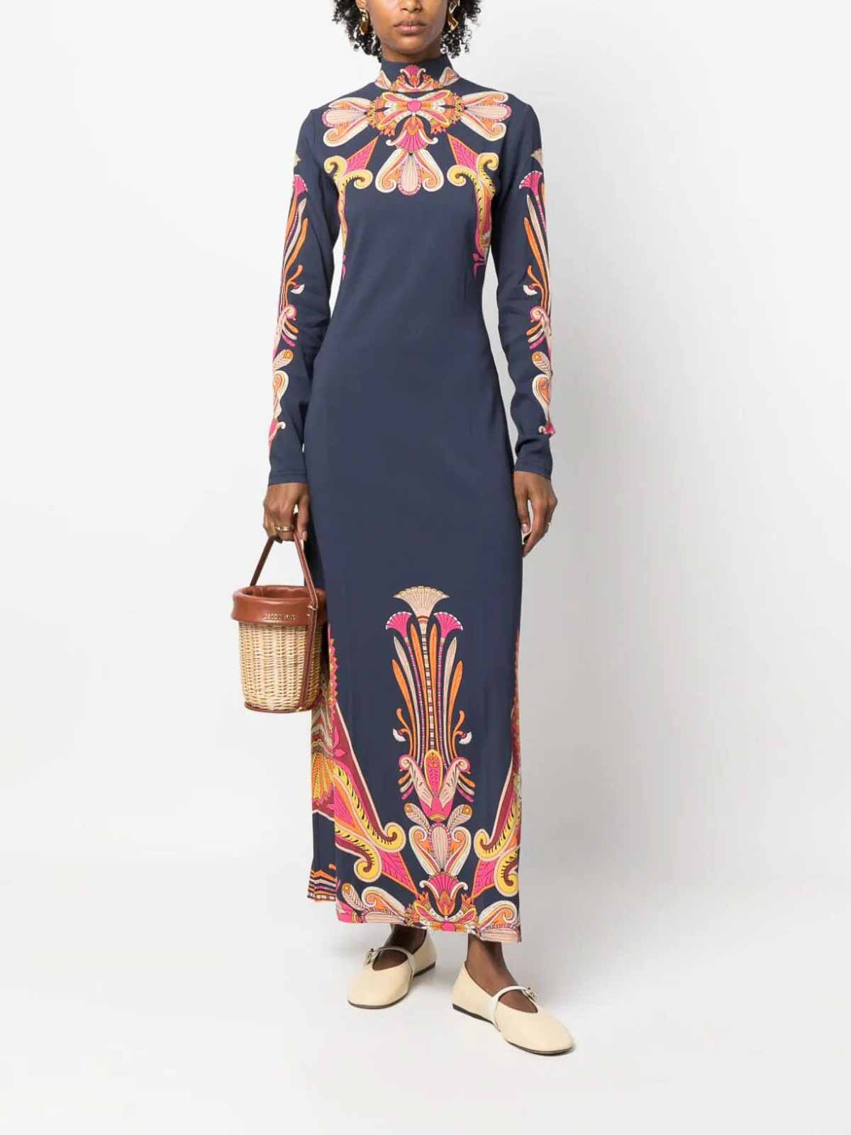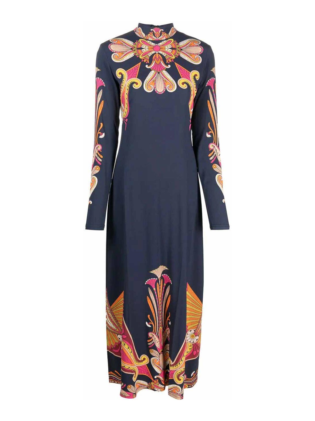 Bedrucktes Kleid mit langem verdecktem Reißverschluss auf der Rückseite