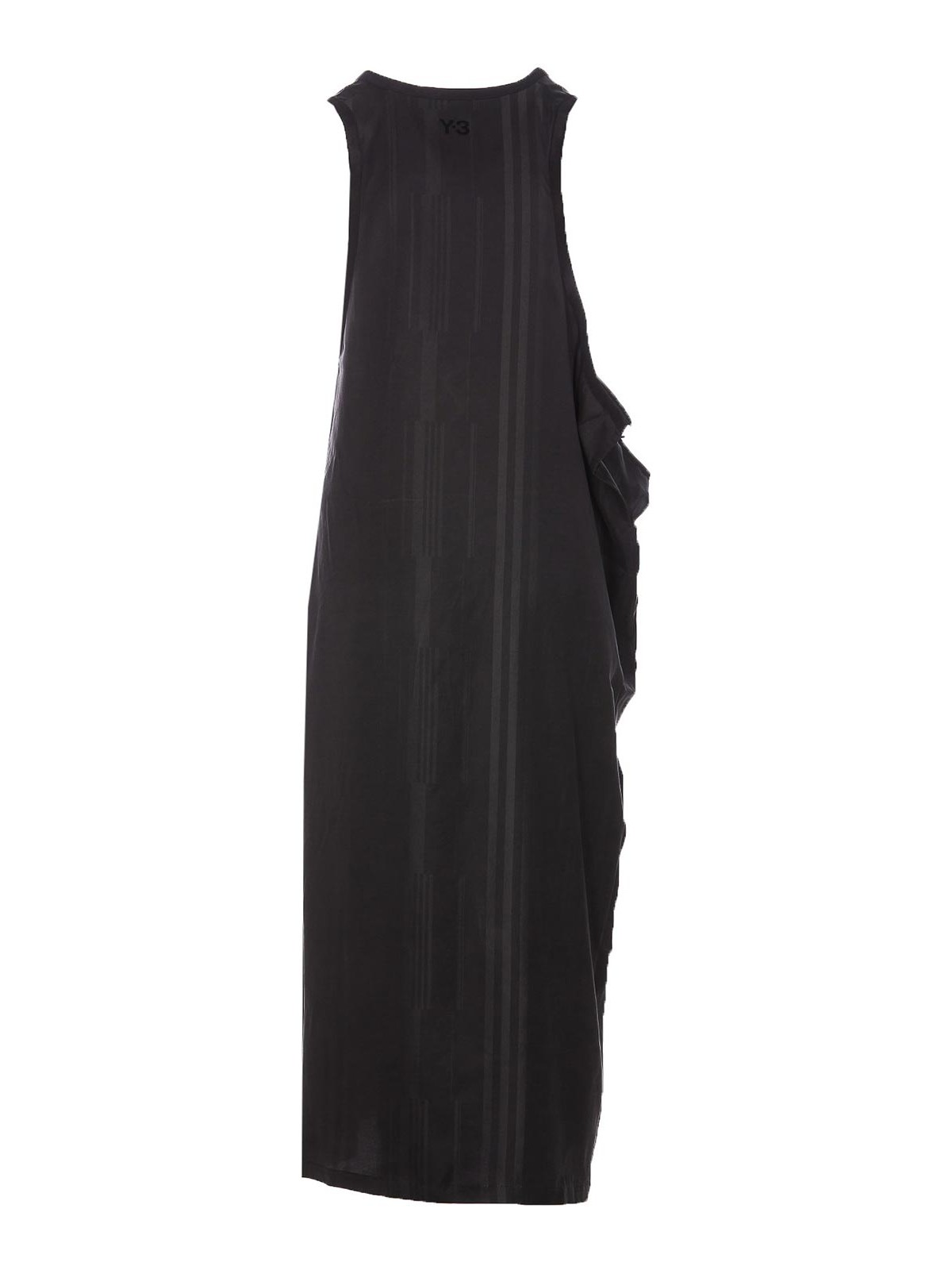 Adidas Y-3 schwarzes 3s-Kleid mit Rundhalsausschnitt, ärmellosem Streifenmuster
