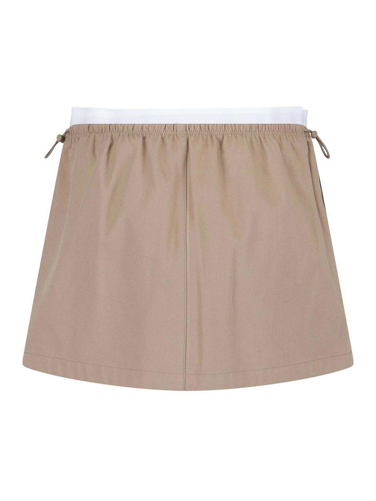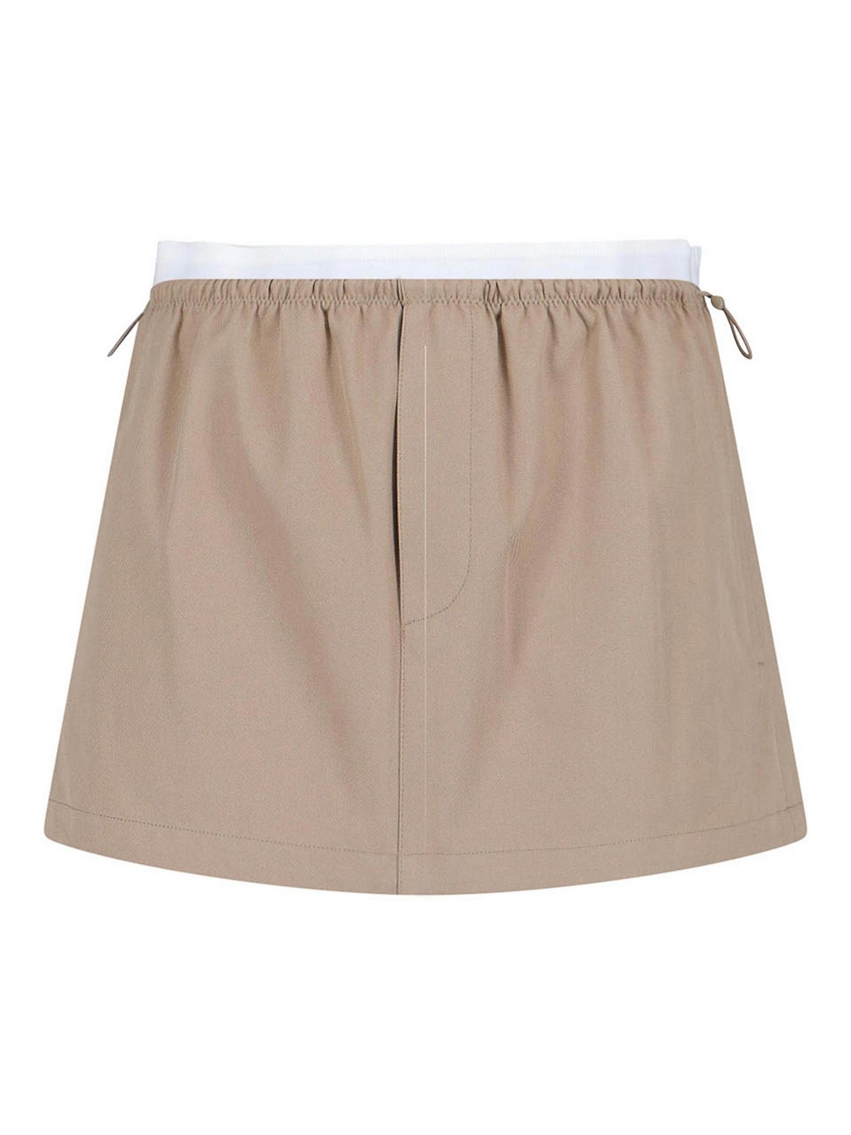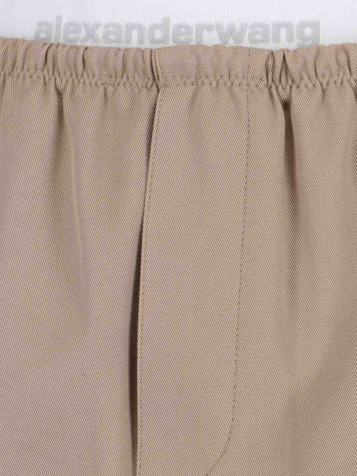 Alexander Wang Logo-Rock aus taupefarbener Baumwolle, mittlere Leibhöhe, verstellbarer Bund mit Kordelzug, Bund mit Schriftzug, zwei Seitentaschen mit Reißverschluss, gerades Bein.