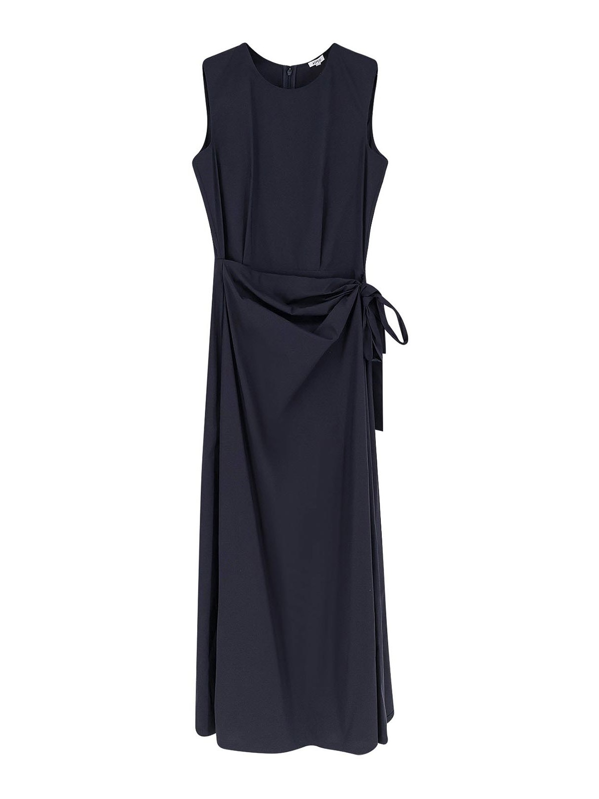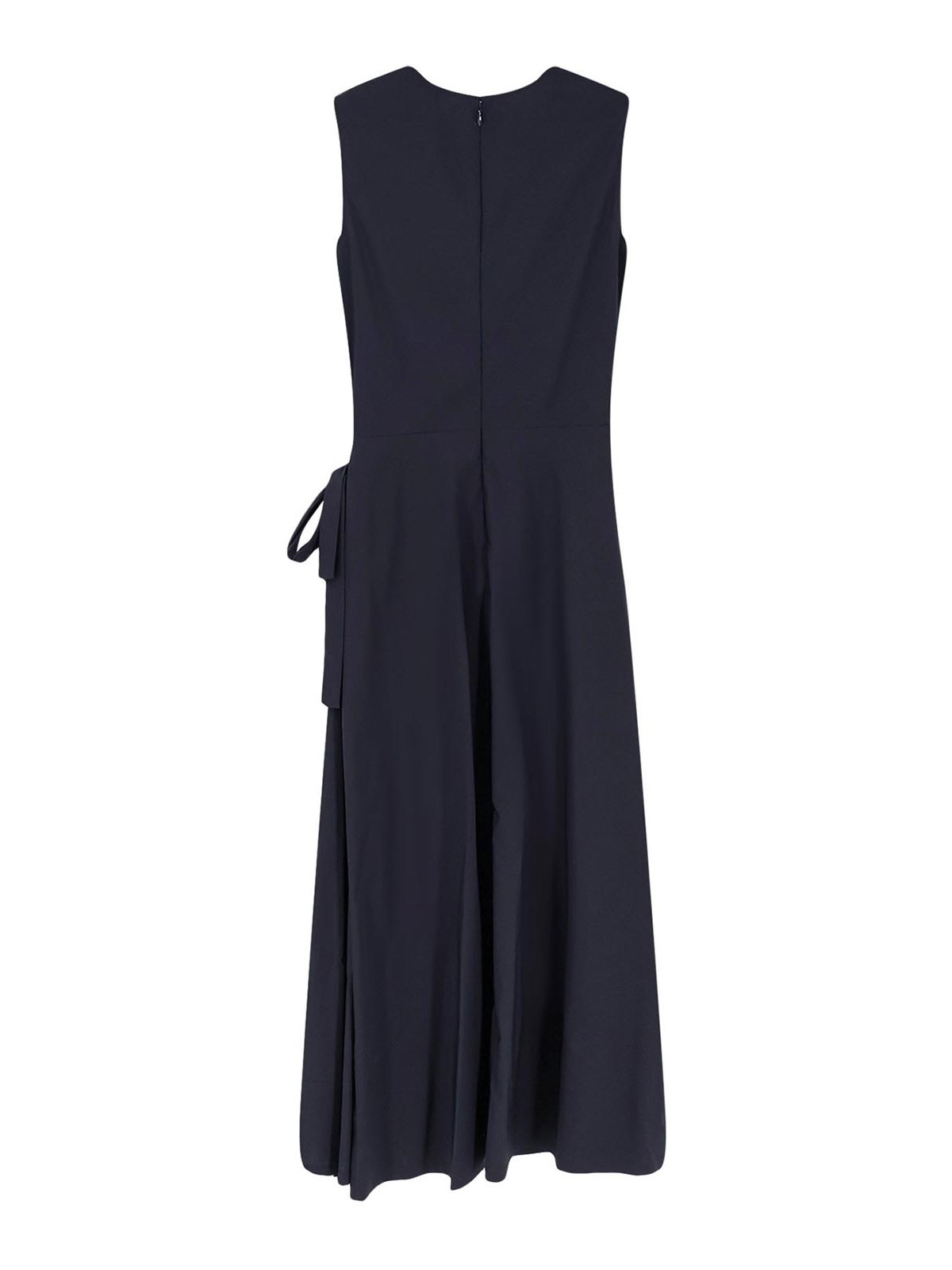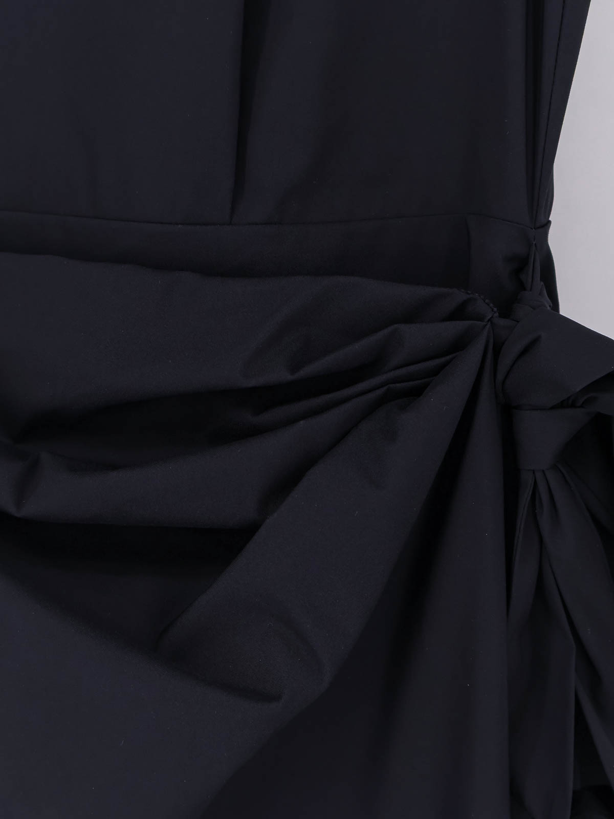 Rundhalsausschnitt, Rückenreißverschluss, Wickelrock, Knotendetail, hergestellt in Italien, 62% Baumwolle, 35% Polyamid, 3% Elastan.