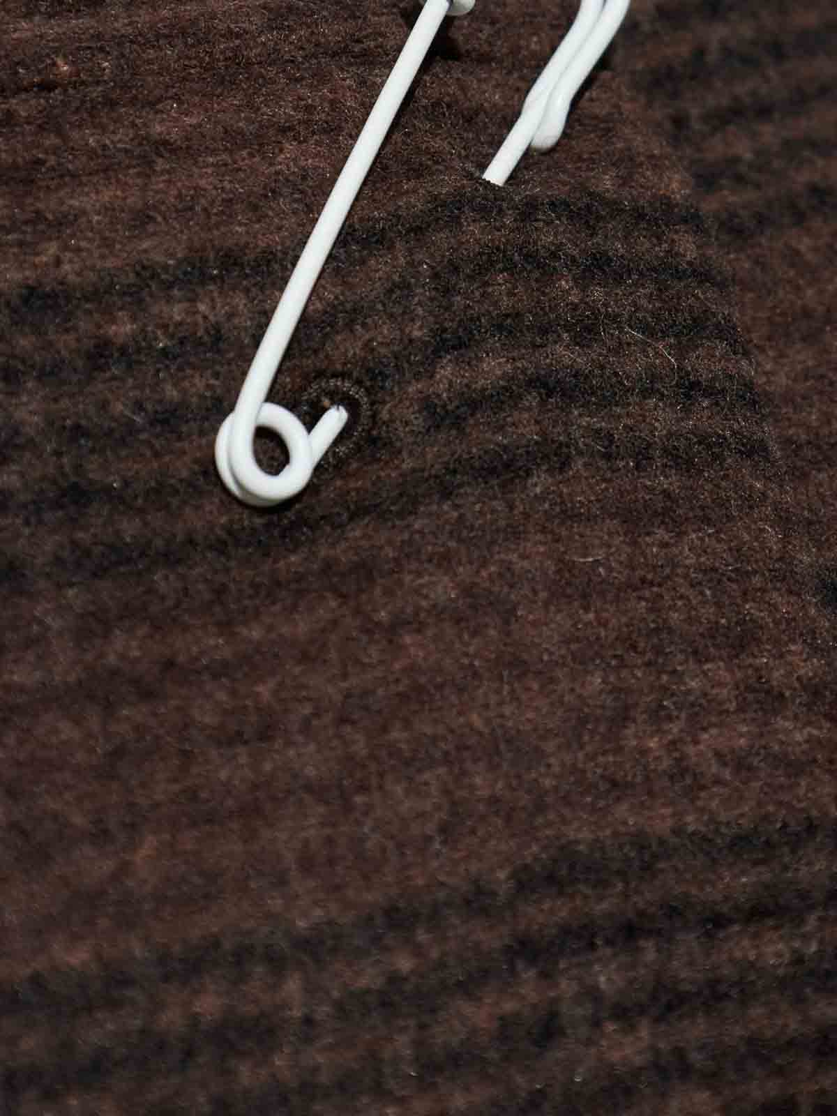Brauner asymmetrischer Saum, kontrastierende Streifen, dekorativer Sicherheitsnadel-Logo-Patch