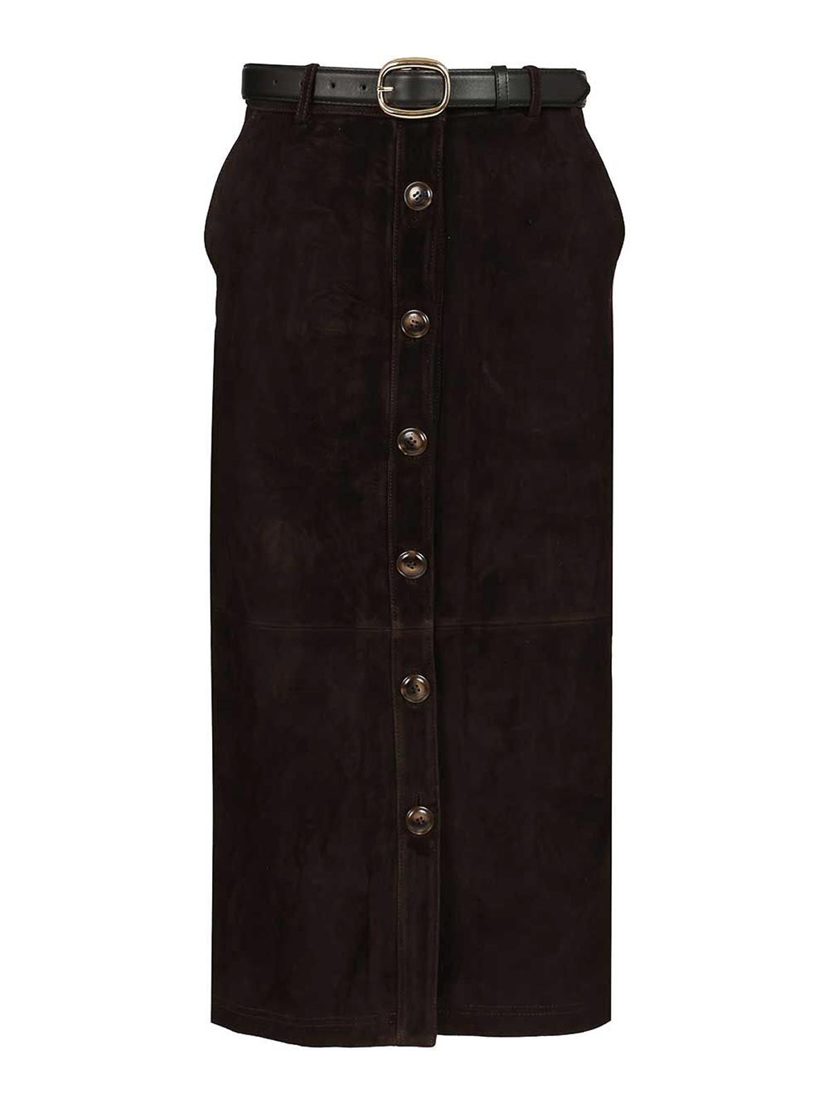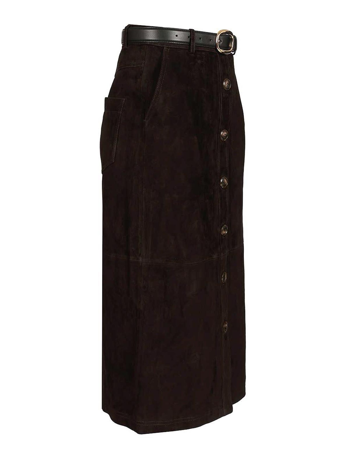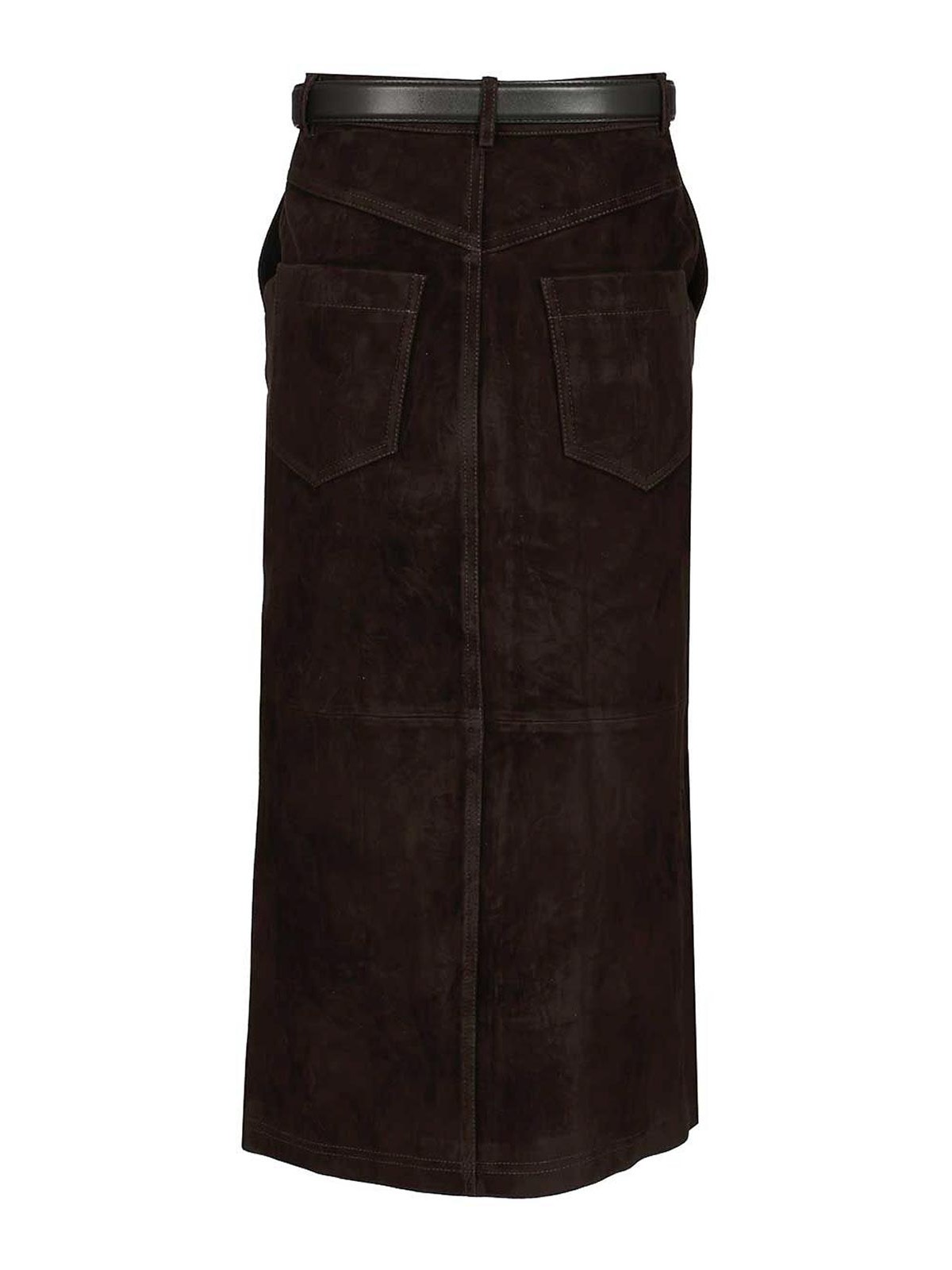 Midirock aus Veloursleder von Self, figurbetonter Schnitt, Knopf, abnehmbarer Gürtel und funktionale Taschen