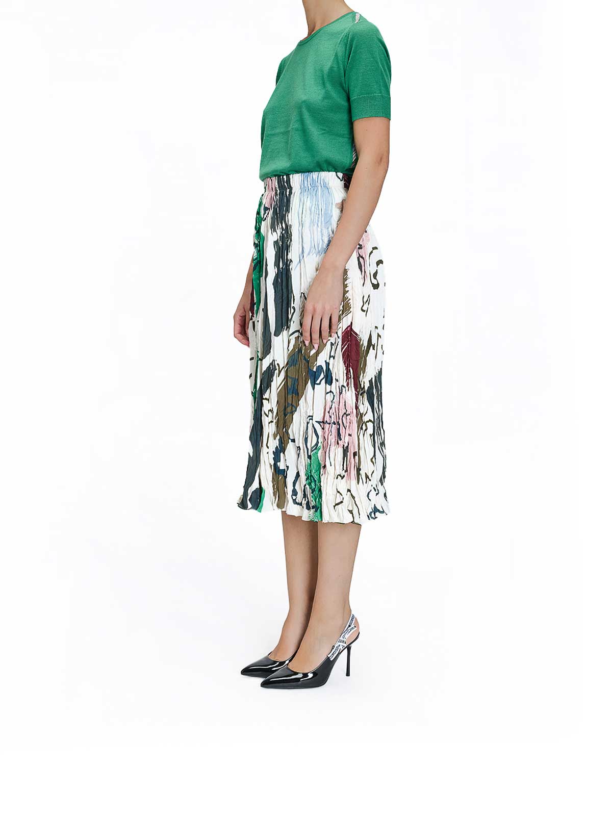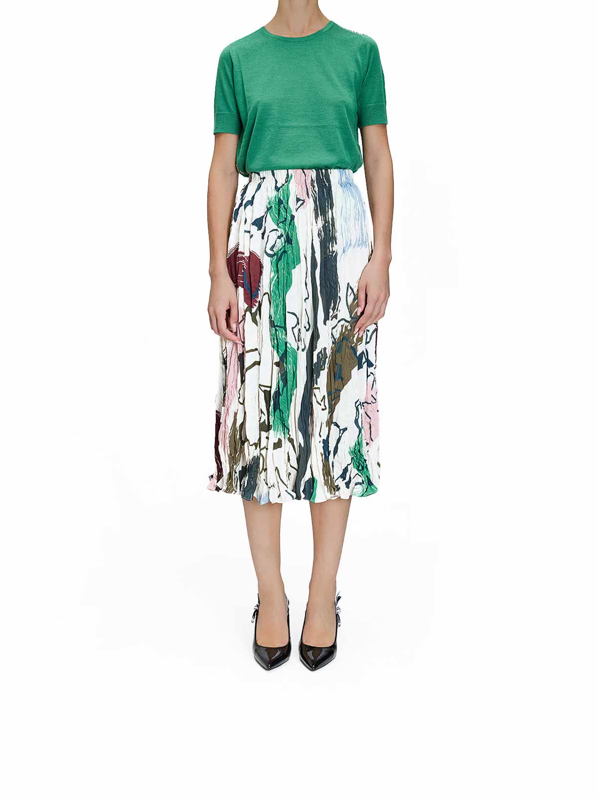 Faltenrock mit Malerprint in Weiß und Mehrfarbig. Faltenrock von Paul Smith in Midiform mit saisonalem Allover-Printmotiv von Malern und elastischem Bund. Plissiertes Design, saisonales Maler-Druckmotiv, elastischer Bund, mittellang. Farbe: weiß und mehrfarbig. 100% Polyester.
