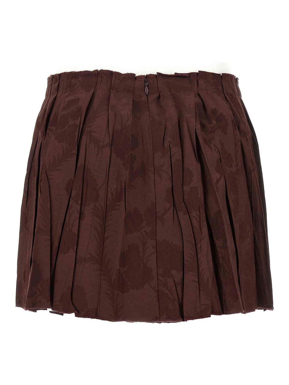 Minirock aus Viskosemischung und Wolle mit Jacquard-Blumenmuster, plissiertem Knittereffekt, Reißverschluss auf der Rückseite.