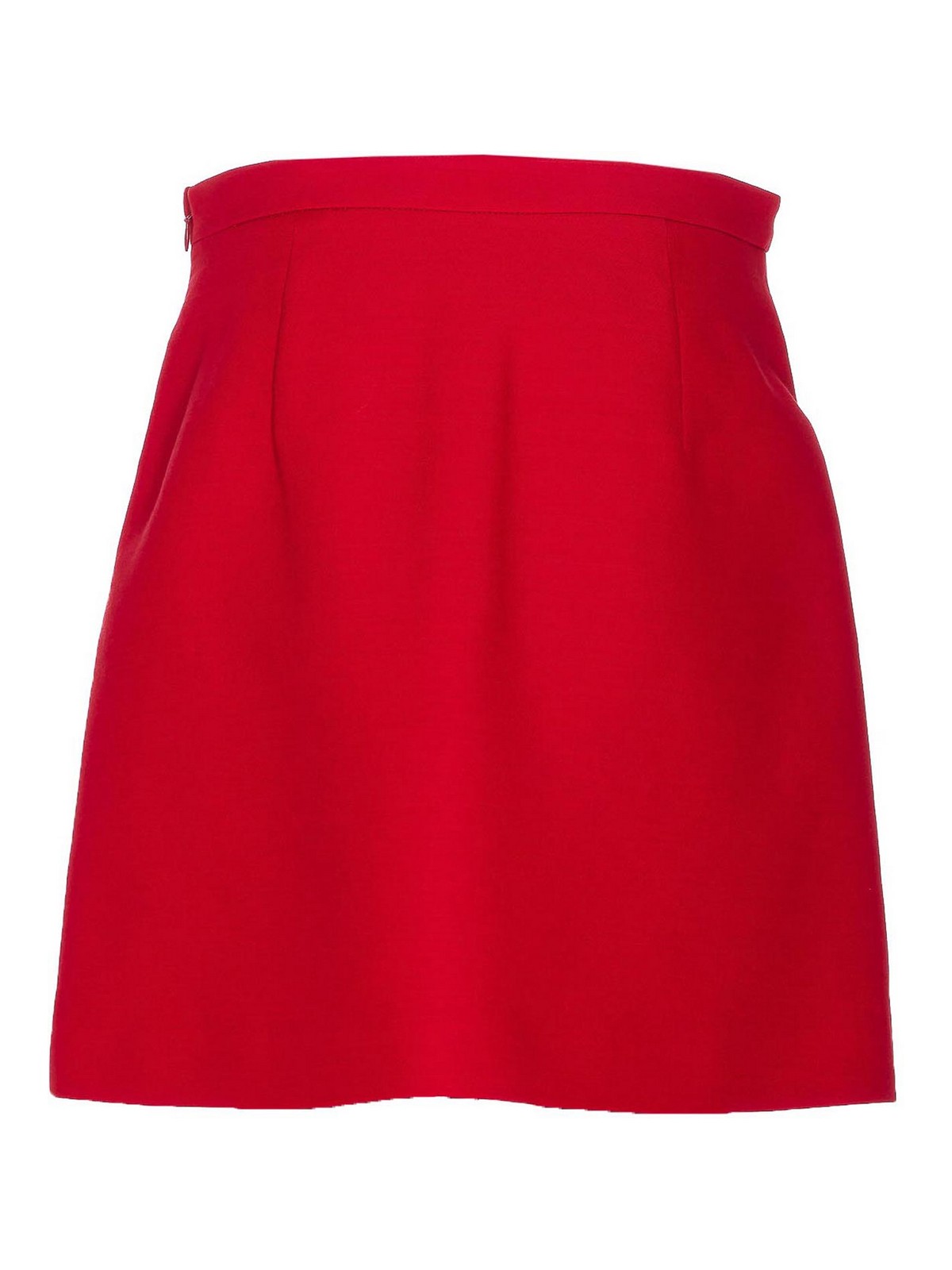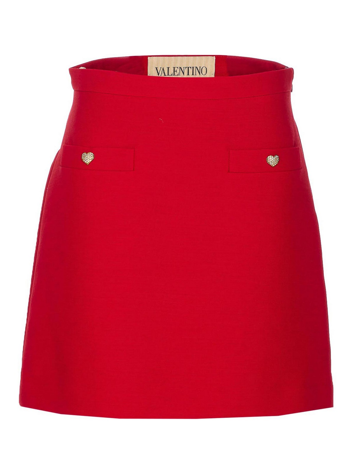 Valentino roter einfarbiger Rock mit seitlichem Reißverschluss und Haken auf der Vorderseite mit Herzknopf