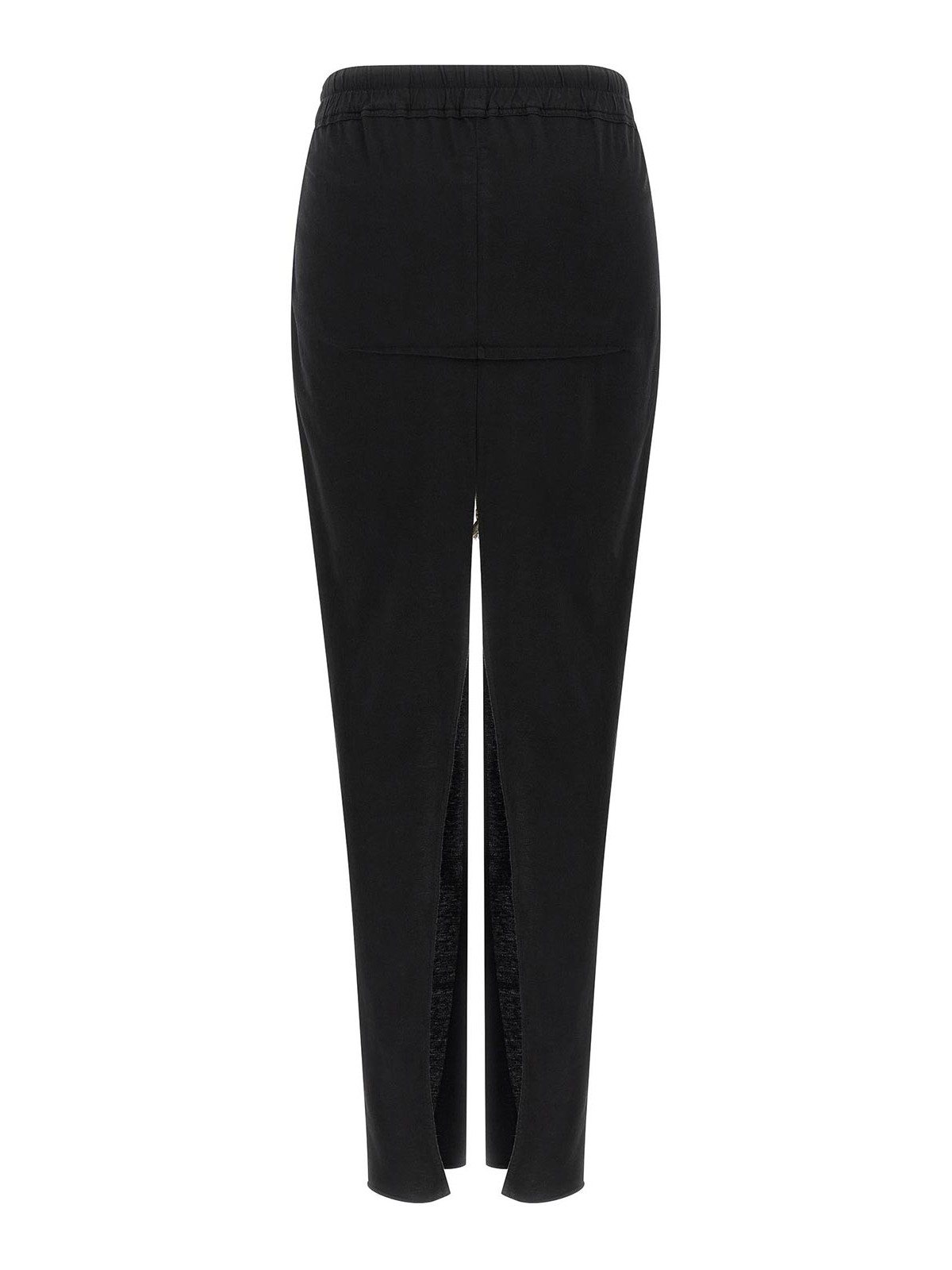 Langer Rock aus bekleidungsgefärbtem, mittelschwerem Baumwolljersey in Scheiben geschnitten, Säulenkonstruktion, breiter Vorder- und Rückenschlitz, elastischer Bund mit Kordelzug, Taschen.