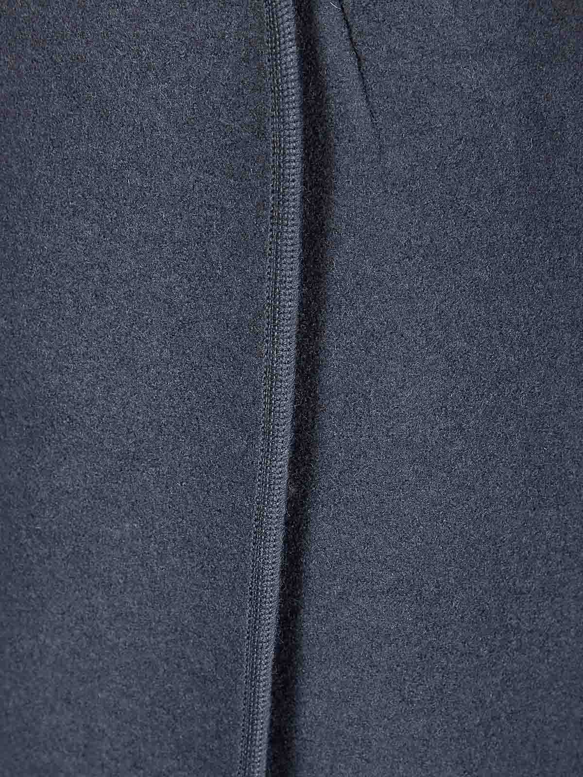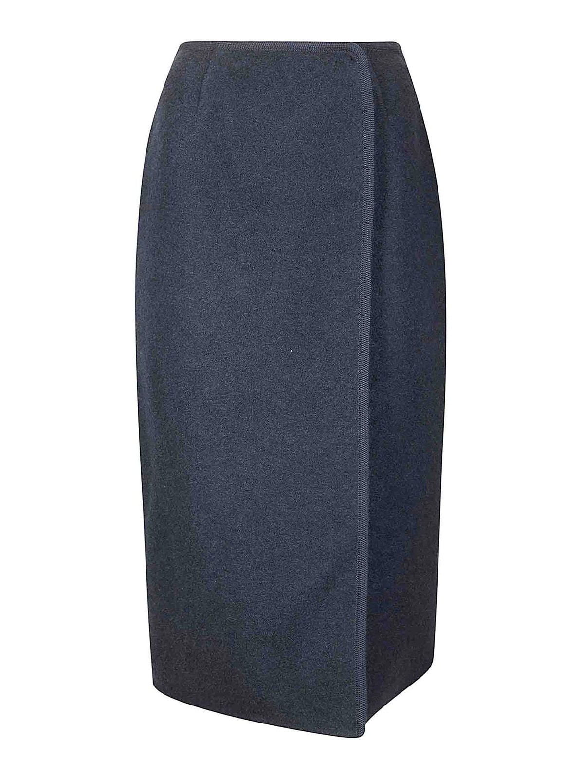 Wickelrock aus gekochter Wolle, dicker Rand, Knopfverschluss, knielang.