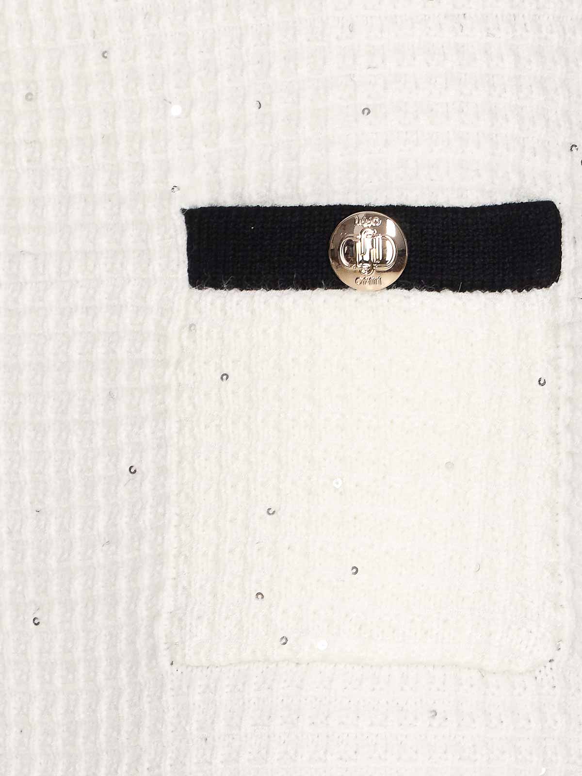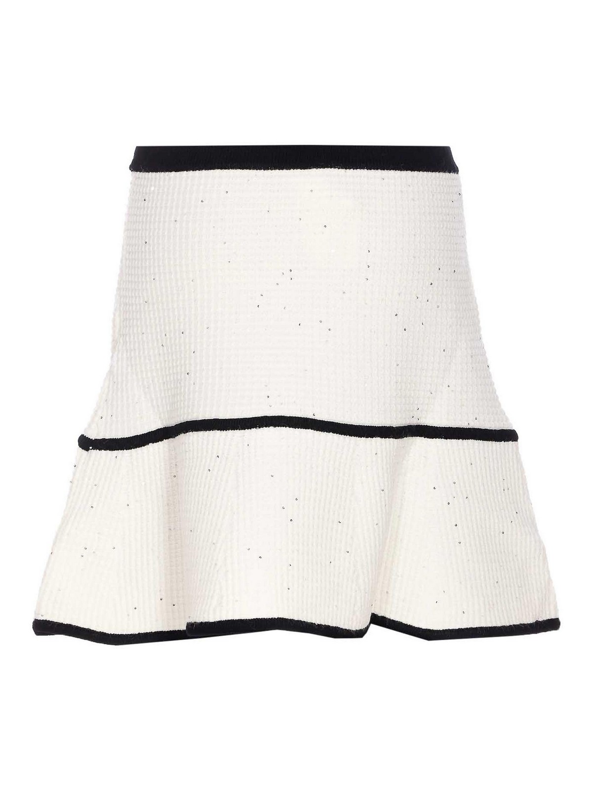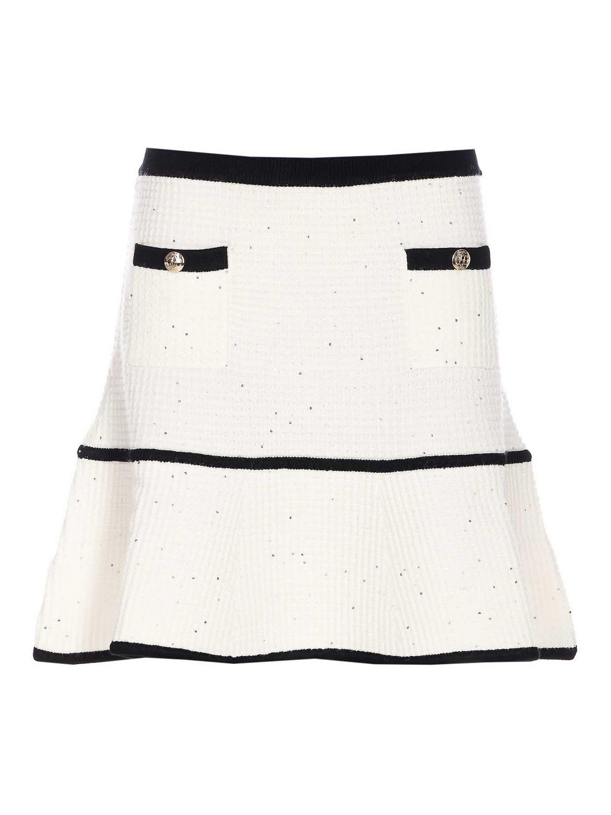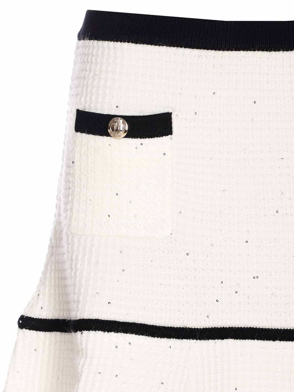 Liu Jo Elfenbeinrock, Mini-Modell, Ton in Ton, Pailletten, Boucle-Effekt, elastisches Modell, Designer-Farbbezeichnung: weiß